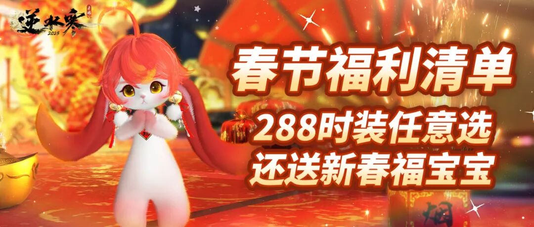 1月17日新春版本上线,新春福利庆典正式开启!不仅有288时装自选、春节限定福宝宝“福福”正式诞生、“门神”新时装免费送、新春限定坐骑、限定庄园组件、蛇宝宝坐骑盲盒、超30款精品配饰免费送,还有半价券、代金券、转职券、自选金色打造等豪礼。