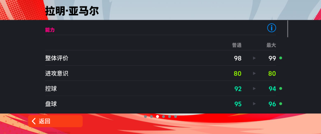 亚马尔增能属性为【护球 +2】