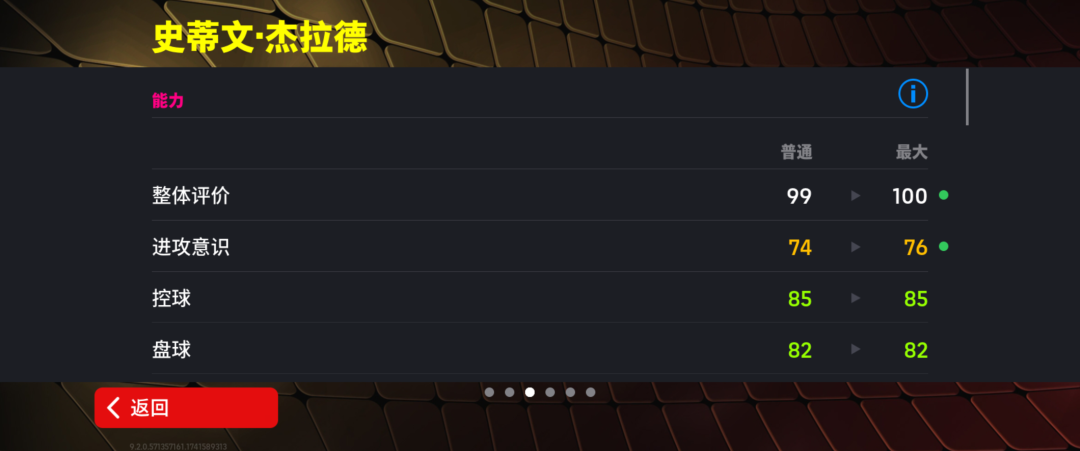 *增能后球员总评可达100分,上阵最大总评可达104分