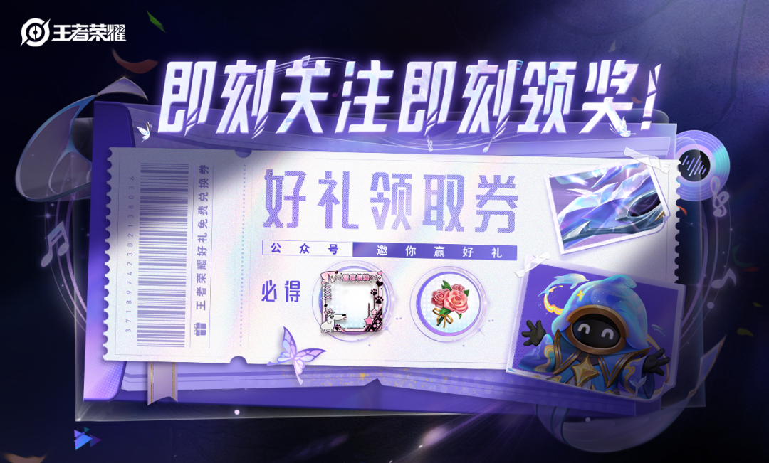即刻关注即刻领奖!前往【公众号菜单栏】-【福利多多】-【来!关注必得好礼】参与活动,关注王者公众号及视频号,必得“重度依赖”头像框&亲密玫瑰*5,还有蔡文姬-舞动绿茵、嬴政-暗夜贵公子、赵云-未来纪元等精美皮肤好礼等你来抽哟~