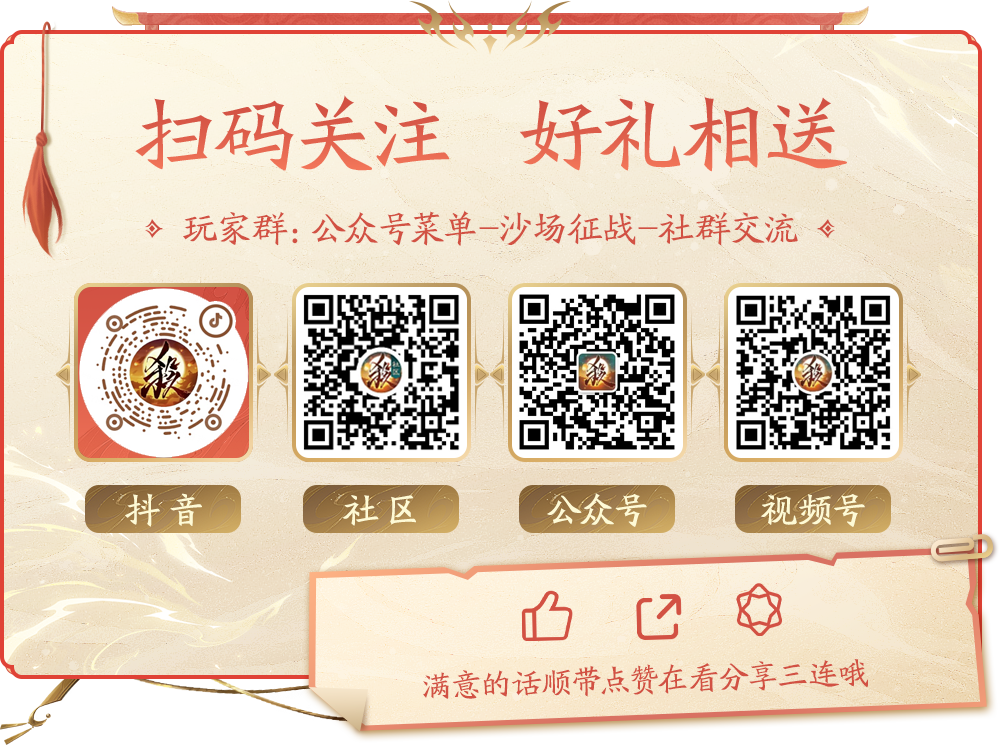 -关注并私信“三国杀小游戏”抖音官方账号:【领取关注礼包】(10个工作日内派送,1个账号仅限领取一次)