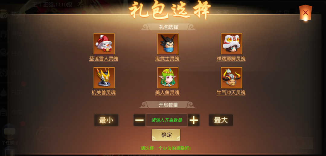 内含:自选橙色宠物灵魄宝箱*1、灵力宝箱*12、旗灵*100、魂晶*120、真气丹*20、5张198元充值优惠券(满500元可用)有效期为15天