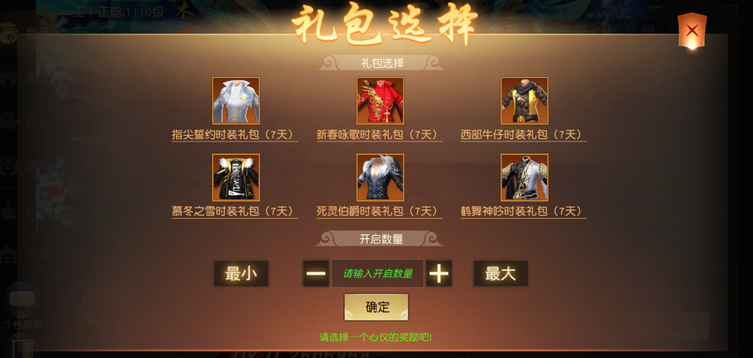 内含:1000元宝、自选时装礼盒(7天)*1(可选指尖誓约时装礼包7天、新春咏歌时装礼包7天、西部牛仔时装礼包7天、慕冬之雪时装礼包7天、死灵伯爵时装礼包7天)、绝学随机礼包*5、炼魂石*20、灵力宝箱*3、10张5元充值优惠券(满10元可用)有效期为15天