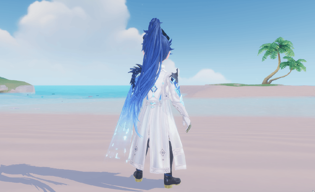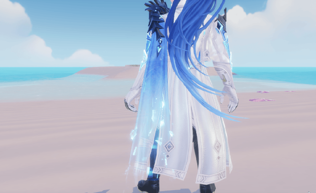 转过身去,男款【螣云矖雾】的蓝青渐变半披风十分夺目,披风上晶莹方块流淌闪耀;长马尾与外套后摆随风而动,不羁少年郎跃然纸上。