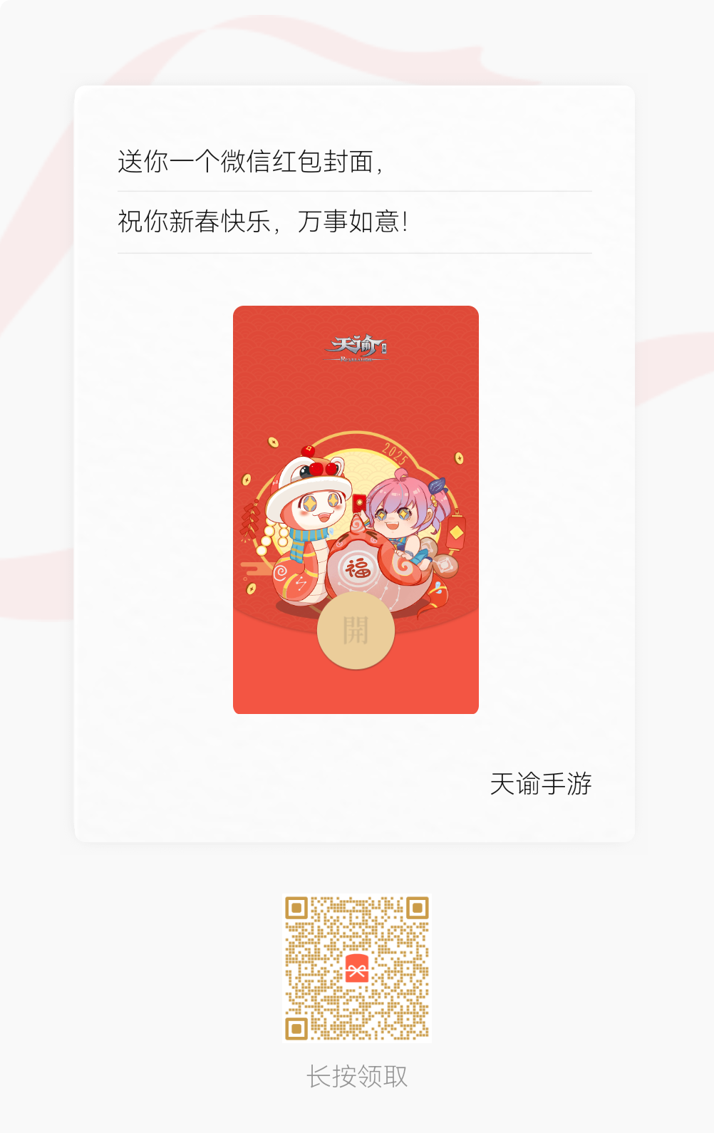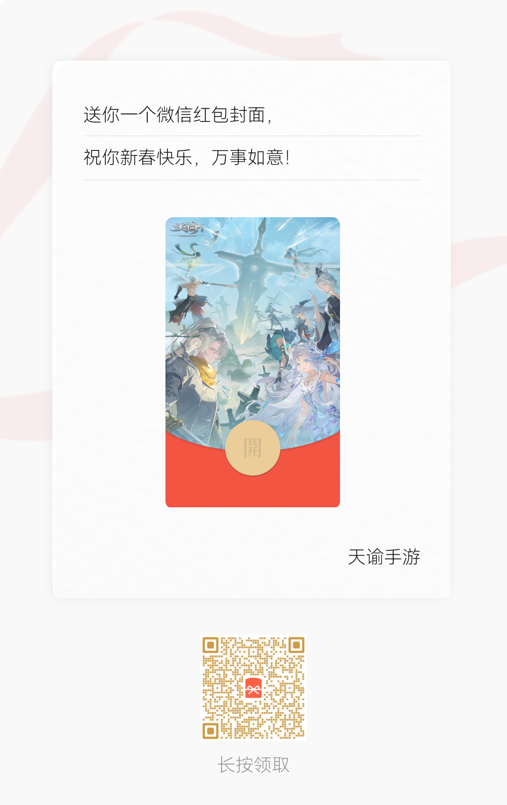 或「天谕手游四周年庆」两款微信红包封面