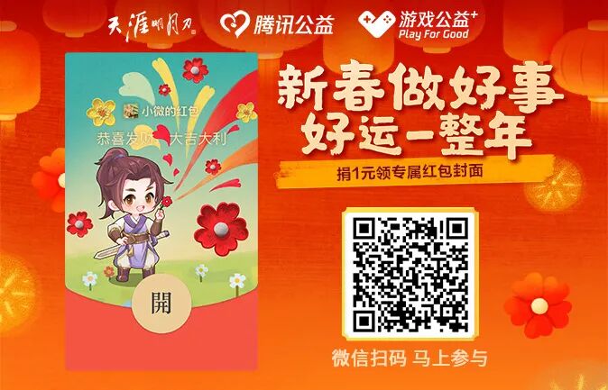 新春做好事好运一整年,刀刀在中国音数协游戏工委指导下,携手腾讯公益、游戏公益+带来小红花公益限定红包封面。参与活动捐助≥1元,即可领取专属红包封面。