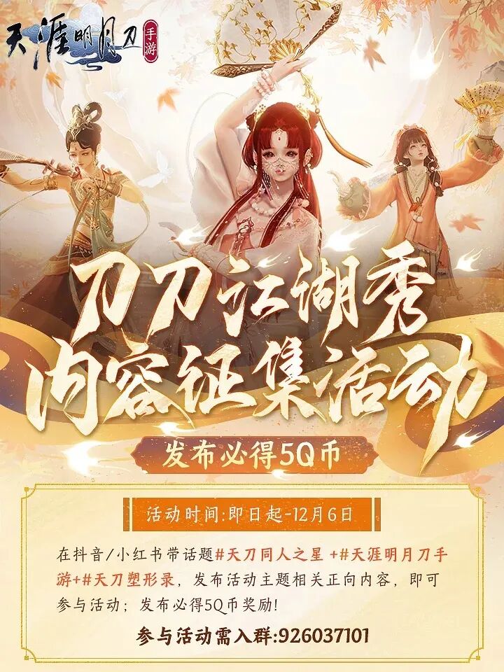 刀妹还同步整理了当前各个平台的一些热门的征集和招募活动,有才华的江湖创作者集结,欢迎少侠报名/参与,也许你就是下一颗闪耀的刀刀新星!