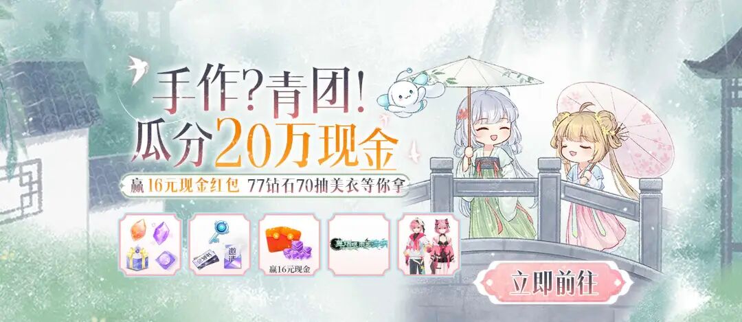 活动奖励:邀请新玩家助力,可领取2元现金;累计获得指定数量春日柳叶还可领取16元现金、100钻石;收集3种不同的材料来合成青团,完成指定次数手作青团可领取粉粉假日组合装、舞烟眠雨正清明称号、钻石*77、银霜秘钥*10(3天)、甄选宝石*10(3天)、逐梦礼包等好礼。