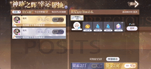 神助之辉,幸运帮抽重磅更新!在幸运邮轮-藏宝之地的银霜之门或鎏金之庭中探索指定次数,可分别获得一次帮抽发起次数,人人都可参与哦~