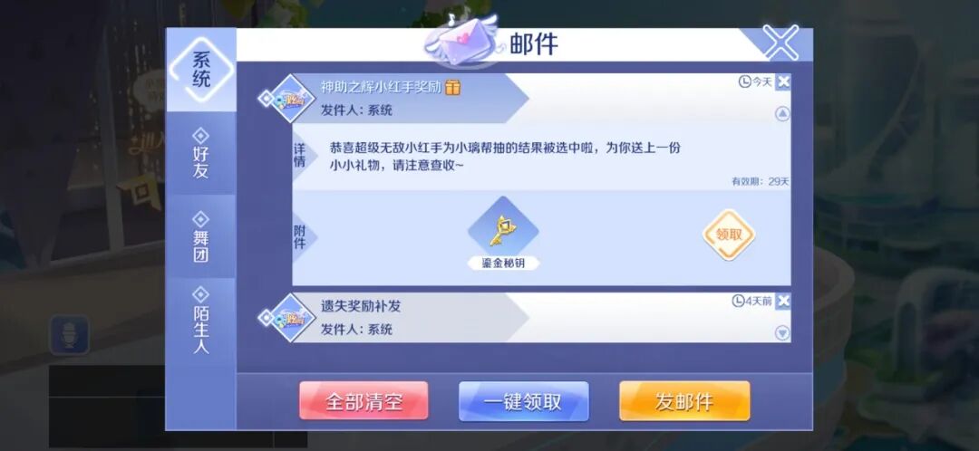 发起方选择某位帮抽玩家的帮抽结果后,帮抽玩家会收到一份小红手奖励邮件。