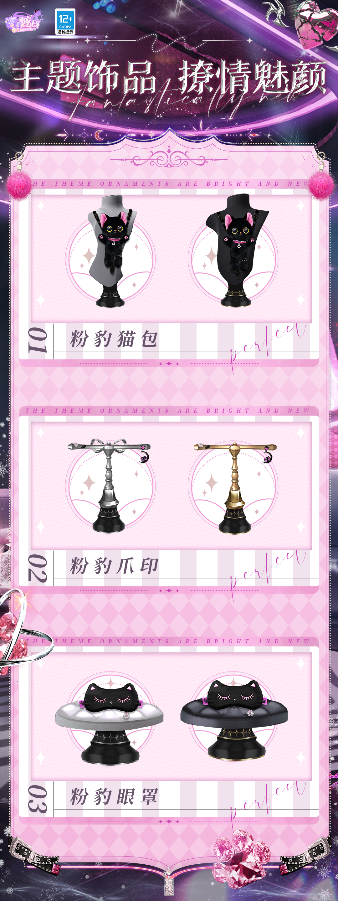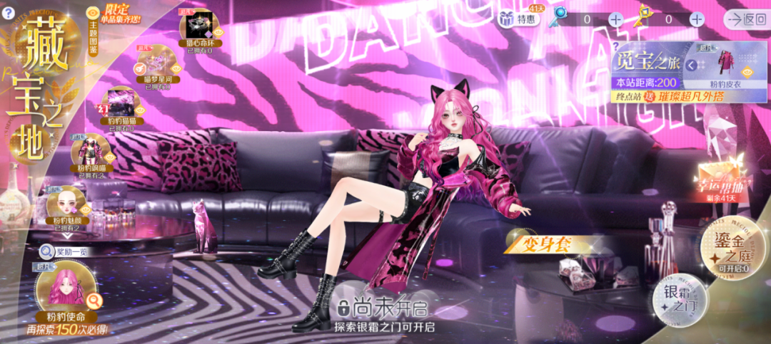 璀璨超凡时装-粉豹飒喵/璀璨超凡定制脸-粉豹魅颜/超凡双飞-喵梦星河/超凡浮云-粉豹聚光/主题头饰&背饰&耳饰/羁绊动作徽章-猎心命环/场景名片/蜕变体型轻奢新时装-瑶花韵珏/蜕变体型轻奢新时装-瑶绯韵律都将上架【藏宝之地-鎏金之庭】