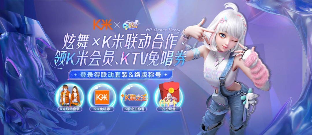 3月22日起,完成 「K米联动」任务 可免费领取:限定服饰 「K米派对」轻奢套装 (含发型+时装)、称号 「K歌之王」等资源,邀请好友登录游戏,还可以获得K米2小时免唱券、K米点歌月会员、现金等等福利!