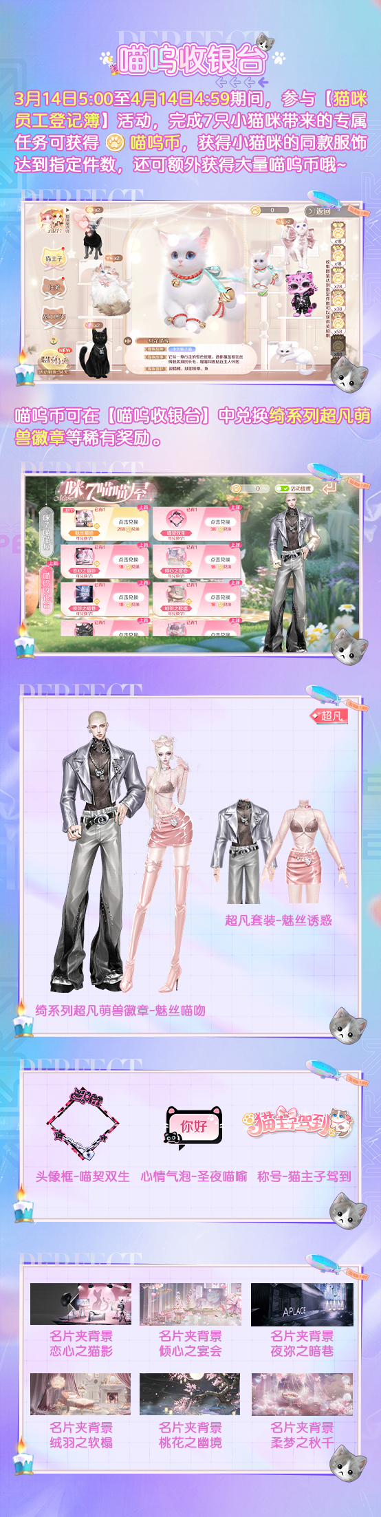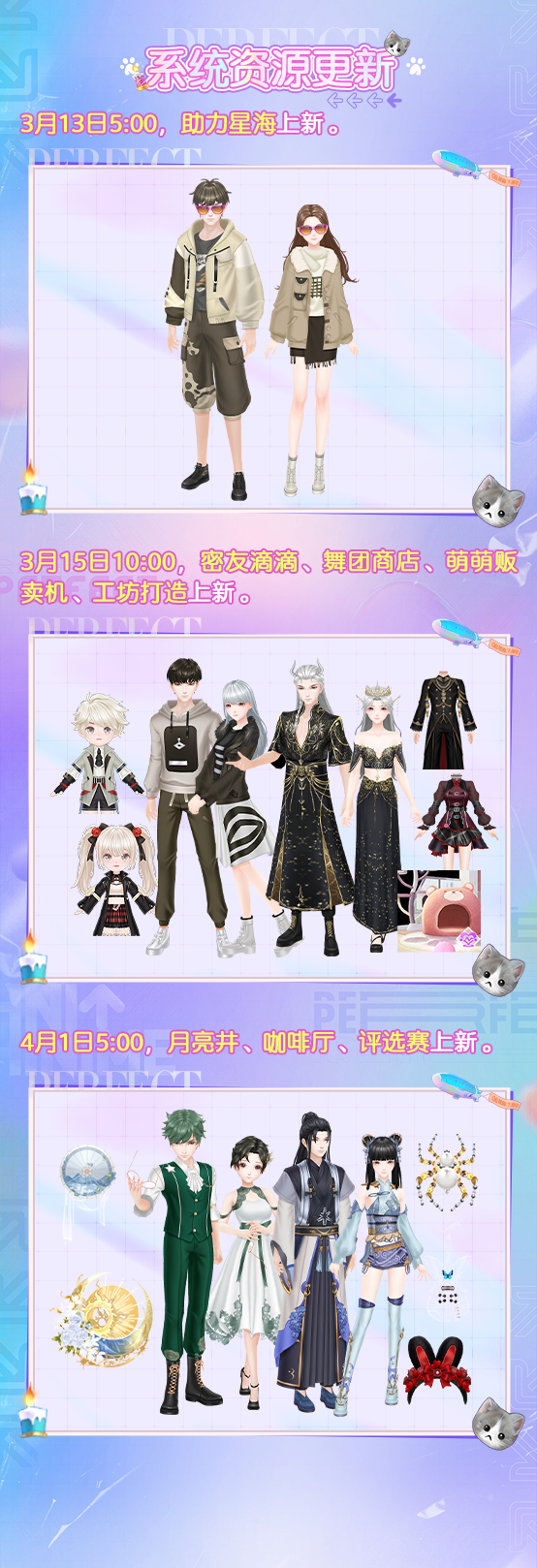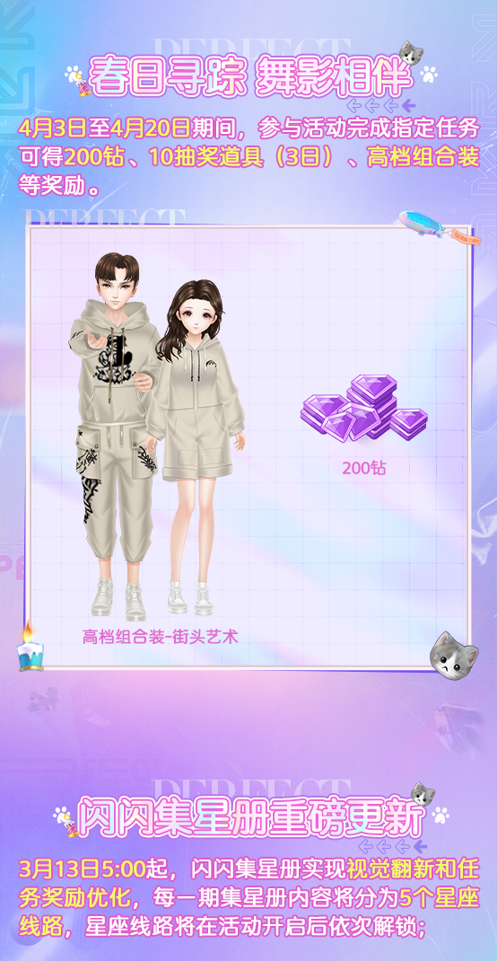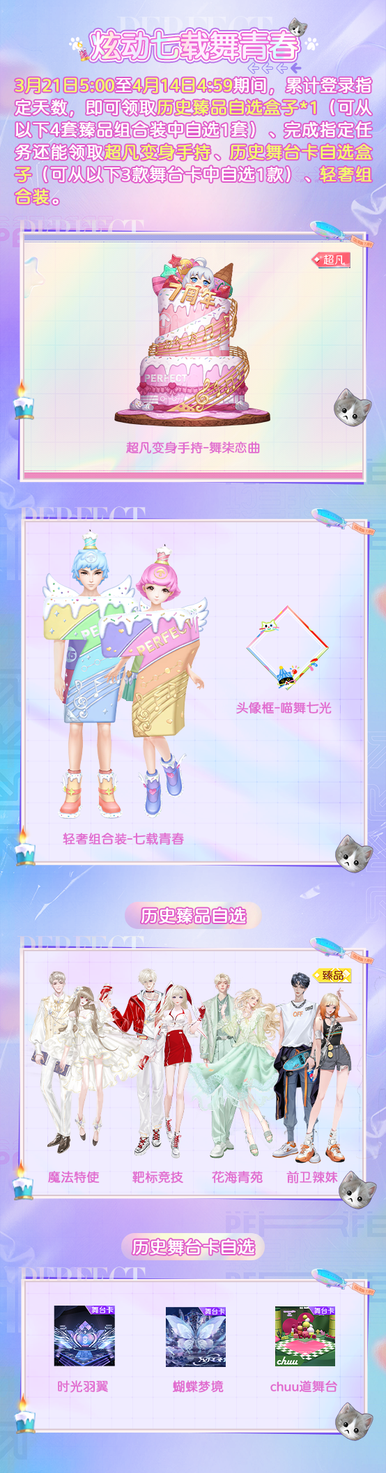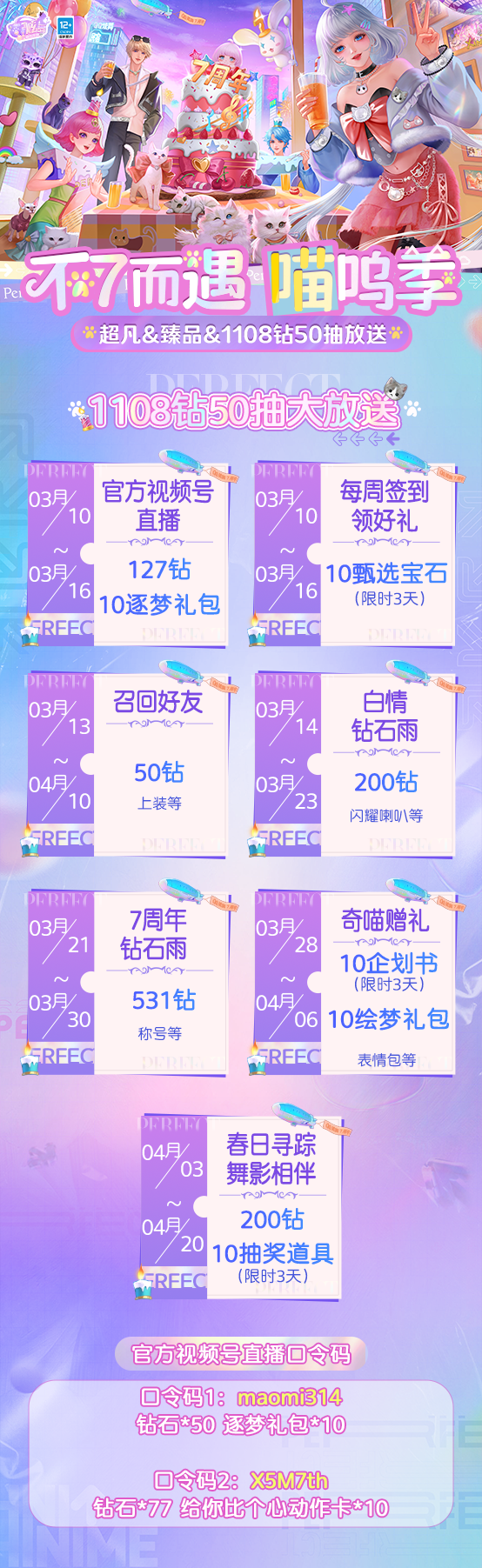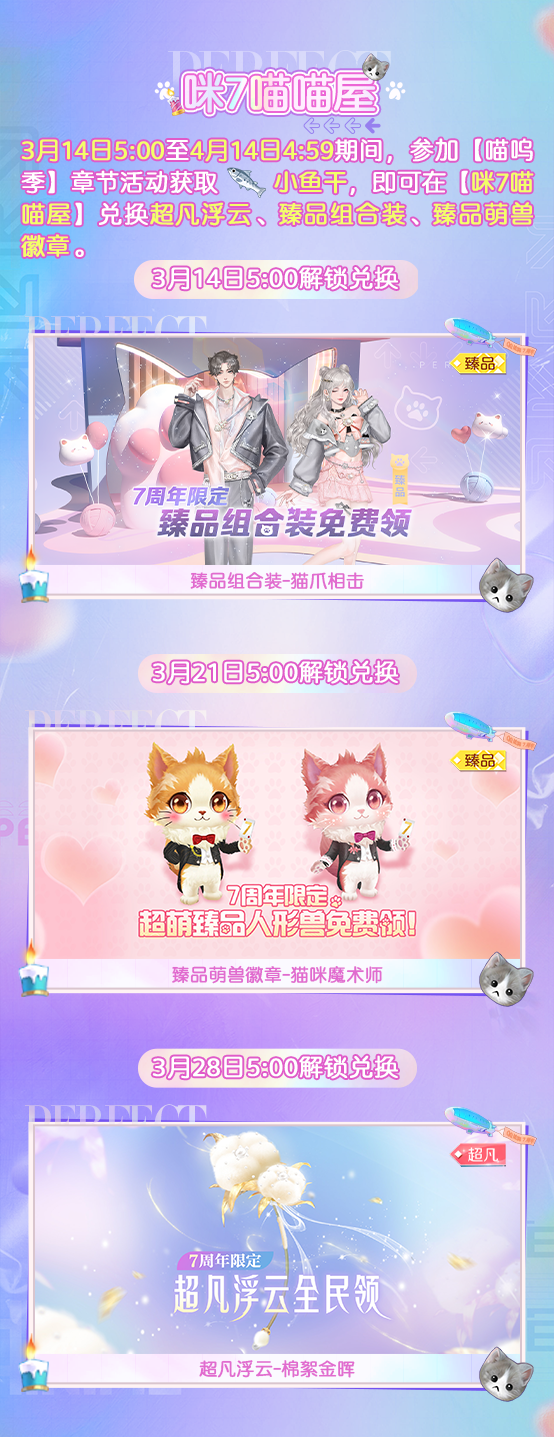 本周四(3月13日)版本更新后,炫舞手游迎来喵呜季!超凡浮云、臻品美衣、1108钻50抽等七周年好礼拿不停!
