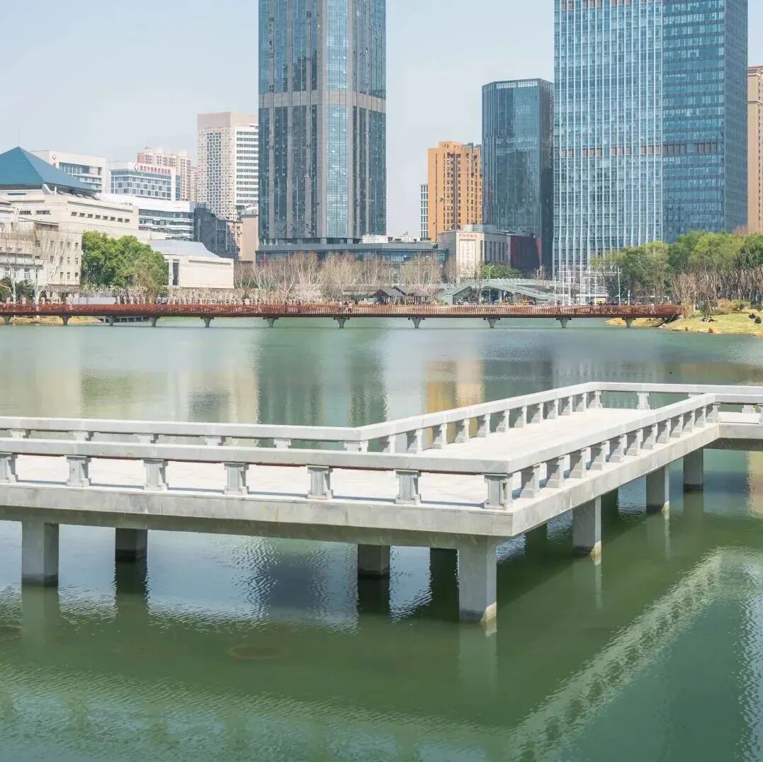 此刻正与公园的长廊碧波虚实相叠。