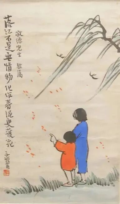 民国 丰子恺落红护花人物图轴 上海市历史博物馆藏