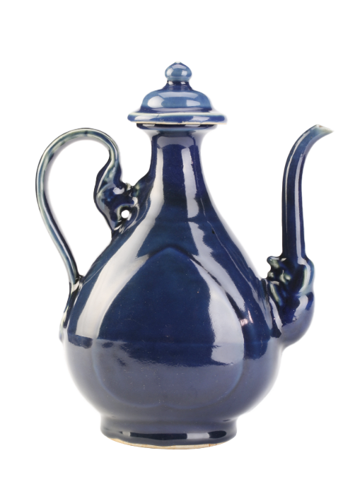明 蓝釉描金鸡心执壶 武汉博物馆藏