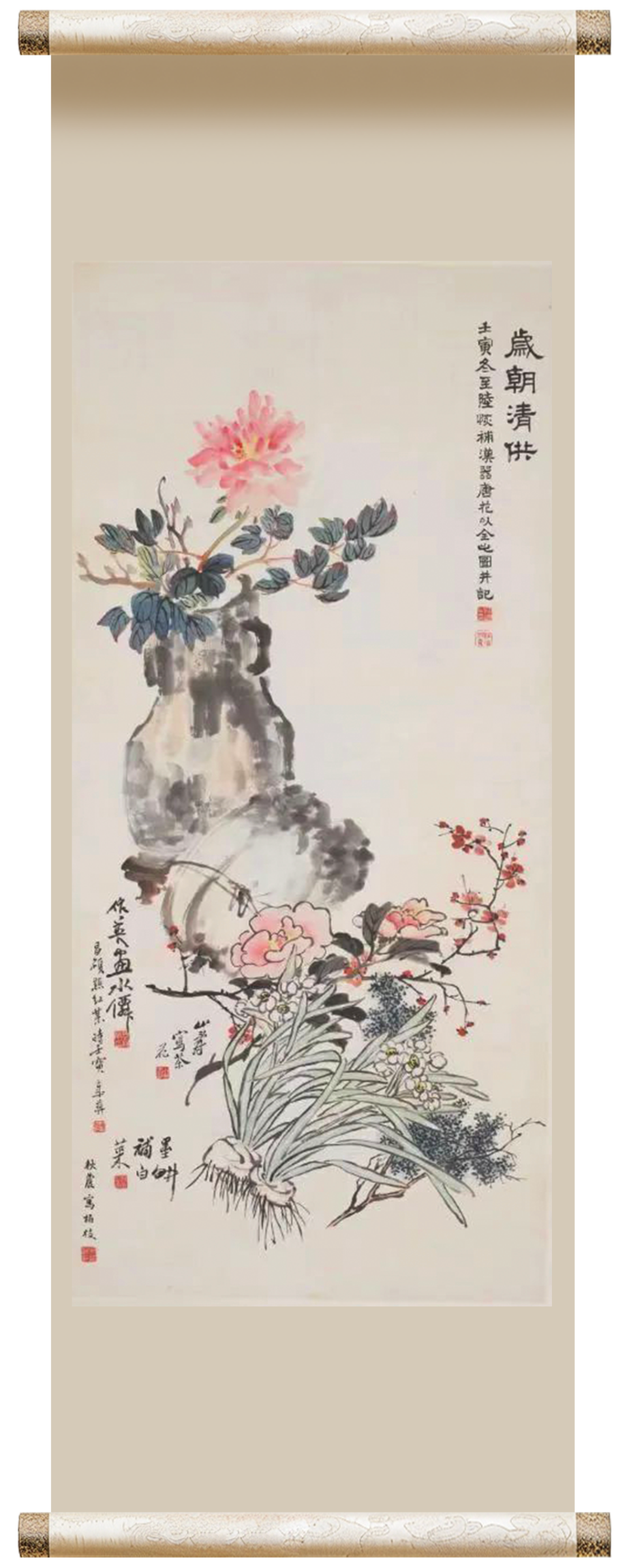清 吴昌硕蒲华陆恢等合作岁朝清供图轴