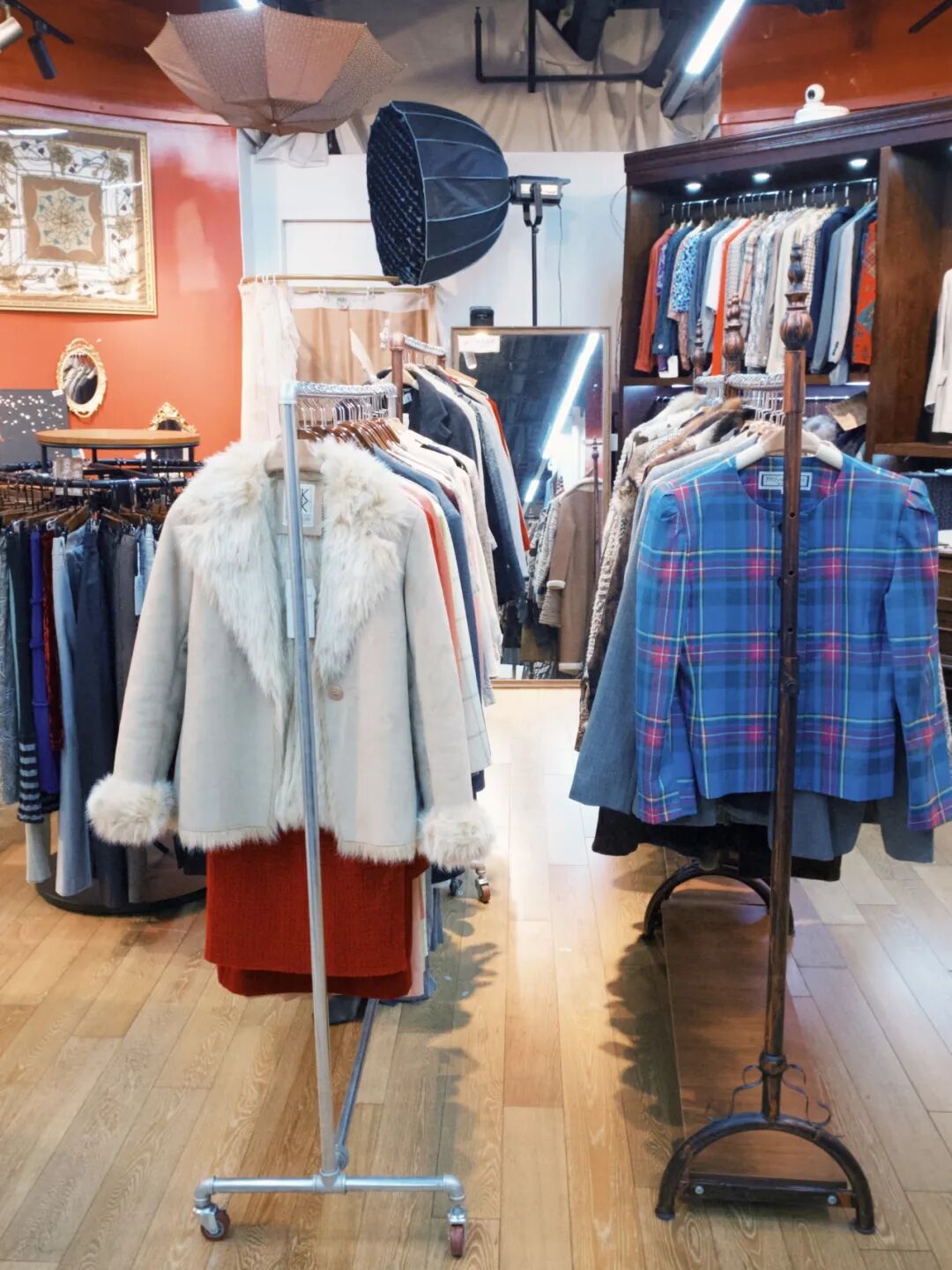 这是一家隐藏在西湖银泰对面的老式社区居民楼里的古着店,从定安路C口出来,步行500米左右就能抵达“银山vintage”。推门而入,淡淡的香氛环绕在空气中,复古陈列诉说时光,每件珍品皆有故事。