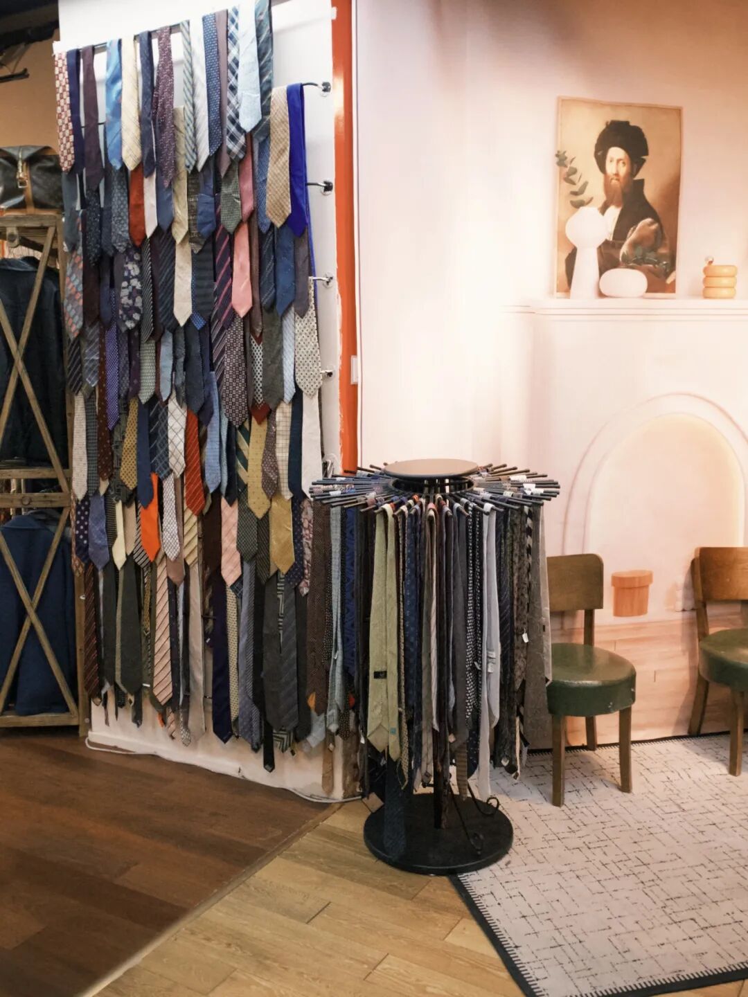 在买手空间中,居中摆放的船型货柜就十分吸睛,充满浓浓的美式复古风,空间不算小但被各种时尚尖货塞得满满当当,男士服装、鞋子、首饰皮具等等。据说其中不乏几件服饰,都带着上世纪八九十年代复古的味道,让人每一个货架都想看遍!