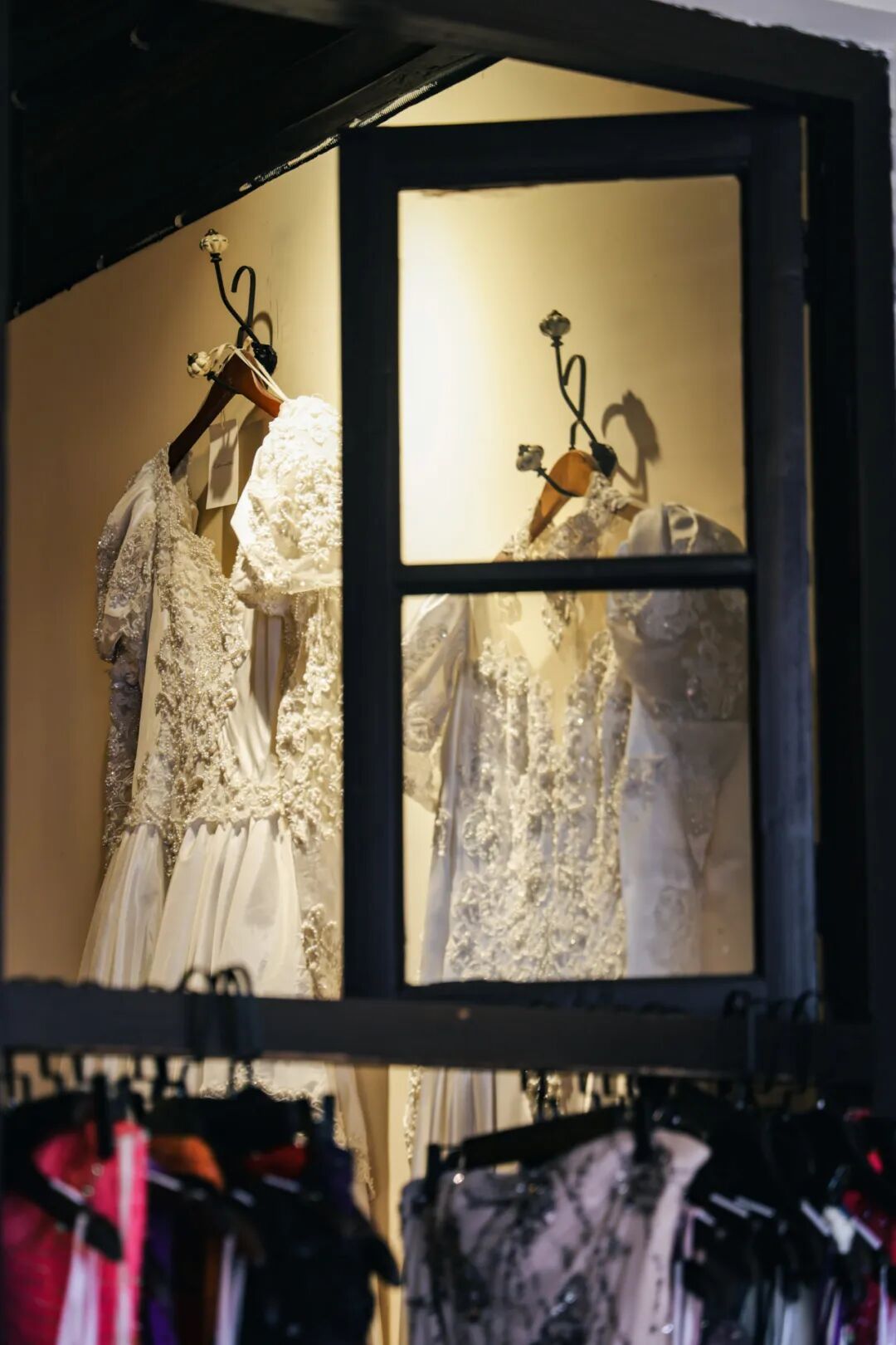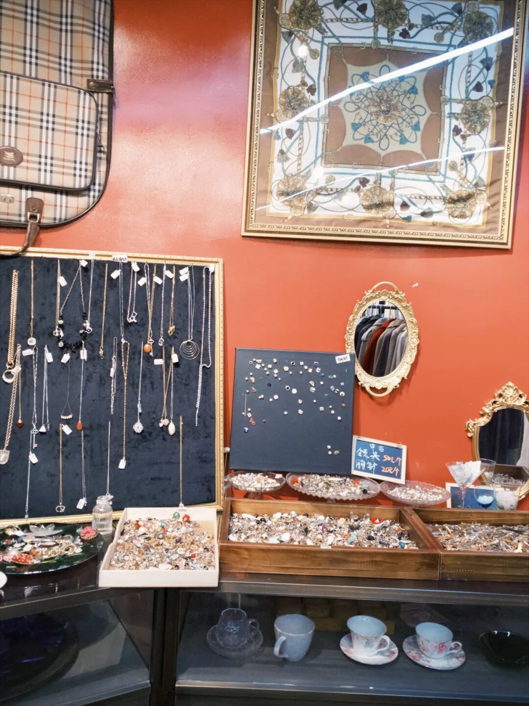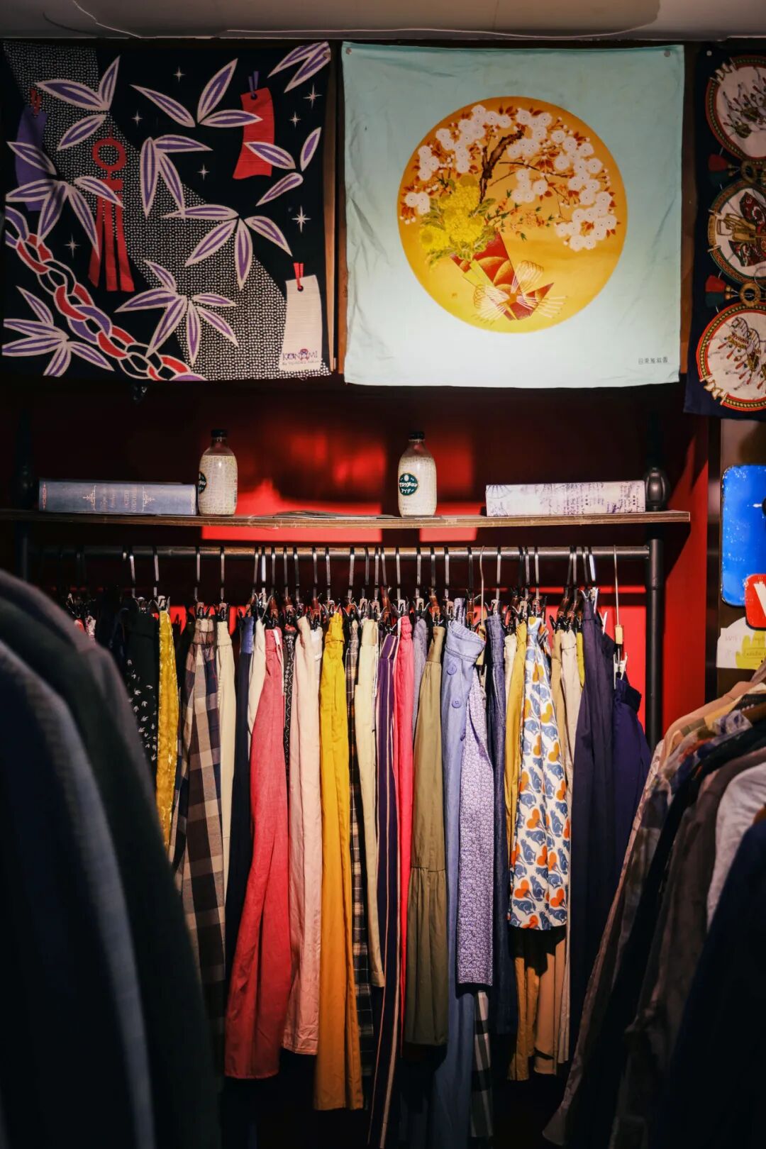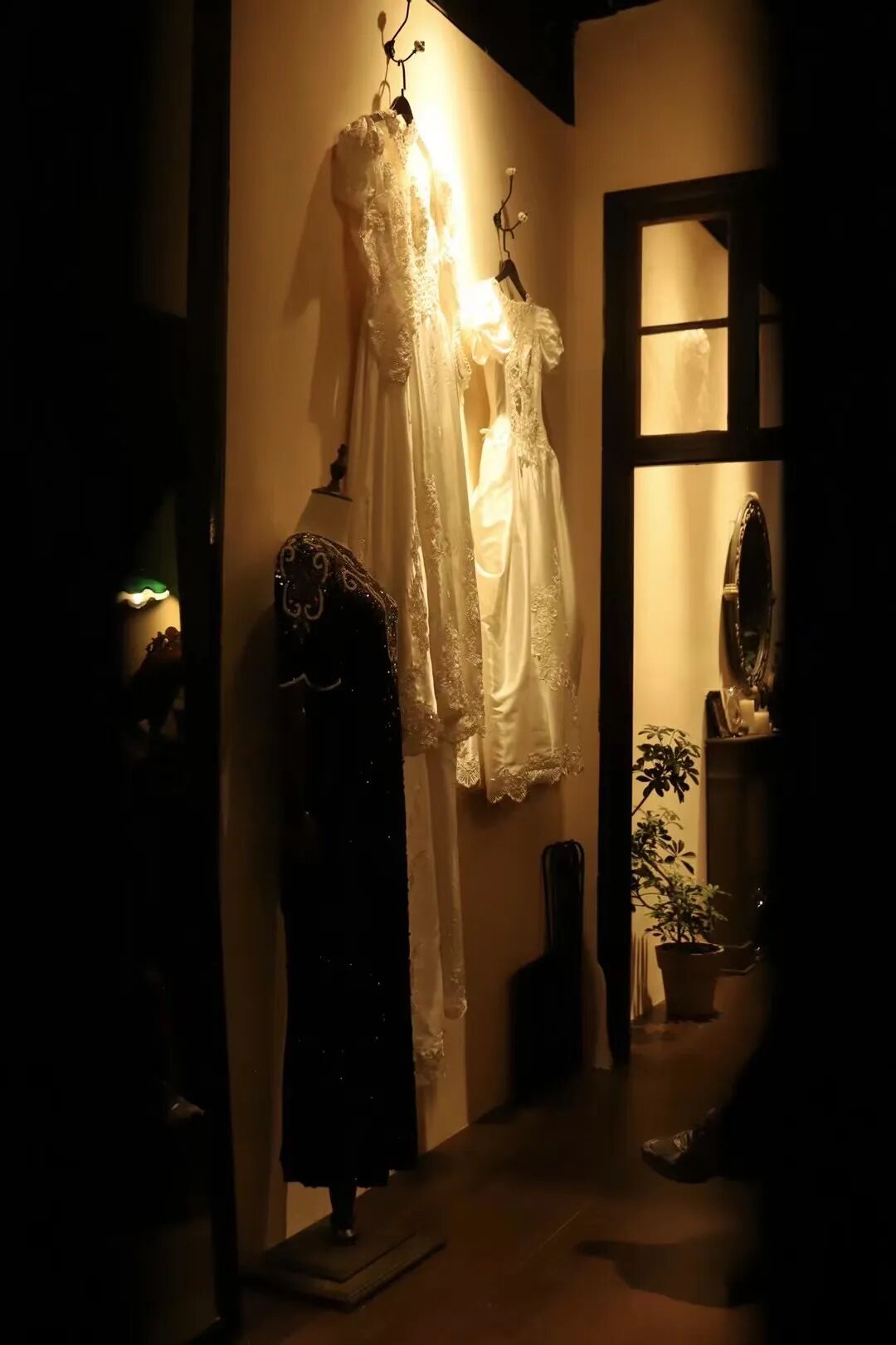 一座小阁楼里,复古元素和原体建筑混合在一起,比起崭新的时尚商品来,这家店选择用古着礼服来展示独特的个人风格,盖茨比风格的华丽,是“银山vintage”的特征复古的迷人之处。