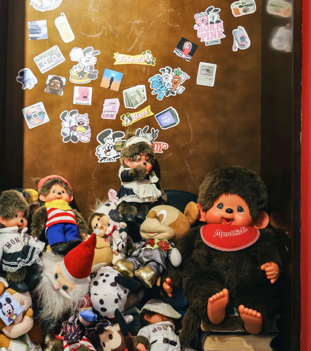 这家店由多个房间联通一起,一进屋,首先就被那面全绿的背景墙所吸引,在店内顺序地浏览,就能逛到与绿墙呼应的大面积红墙,红绿恍惚间形成了复古的错落空间。这样一来,倒是颇有一丝《天使爱美丽》中的复古格调。