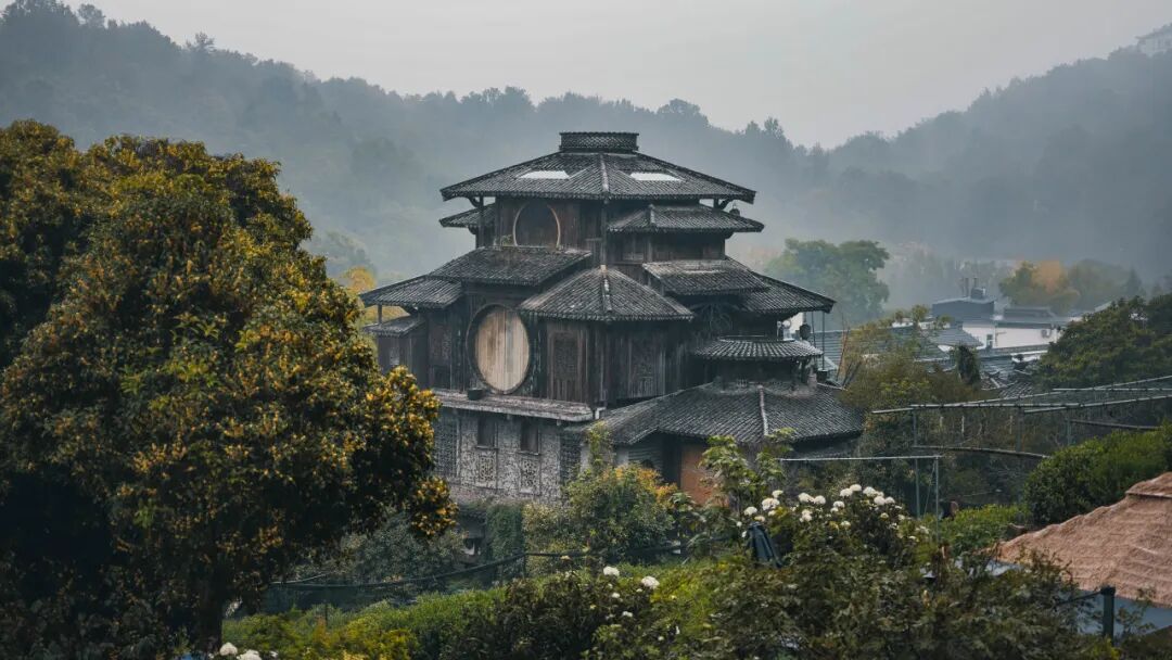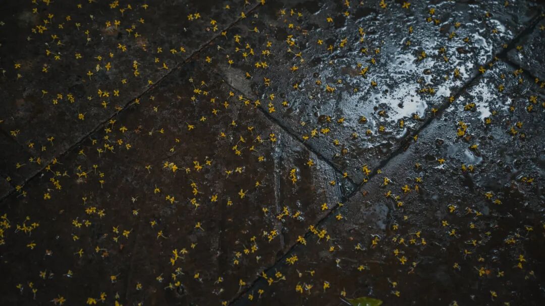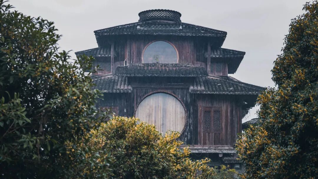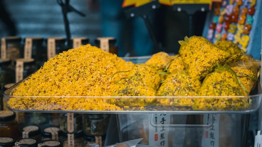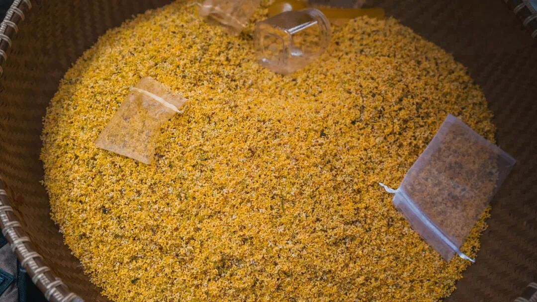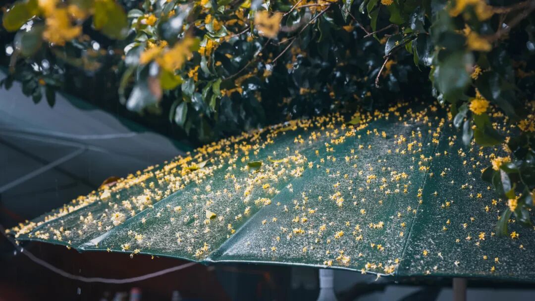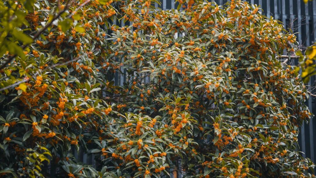 周围的桂花为汤屋增添了一抹梦幻色彩
