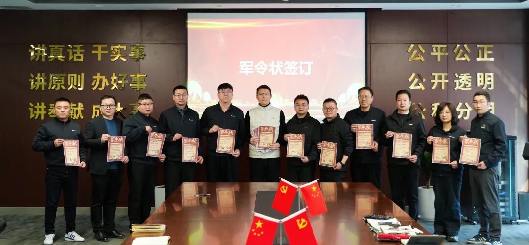 公司领导及各单位负责人在军令状上签字并合影留念。全体员工将以坚定的信念和昂扬的斗志,迎接即将到来的生产挑战。