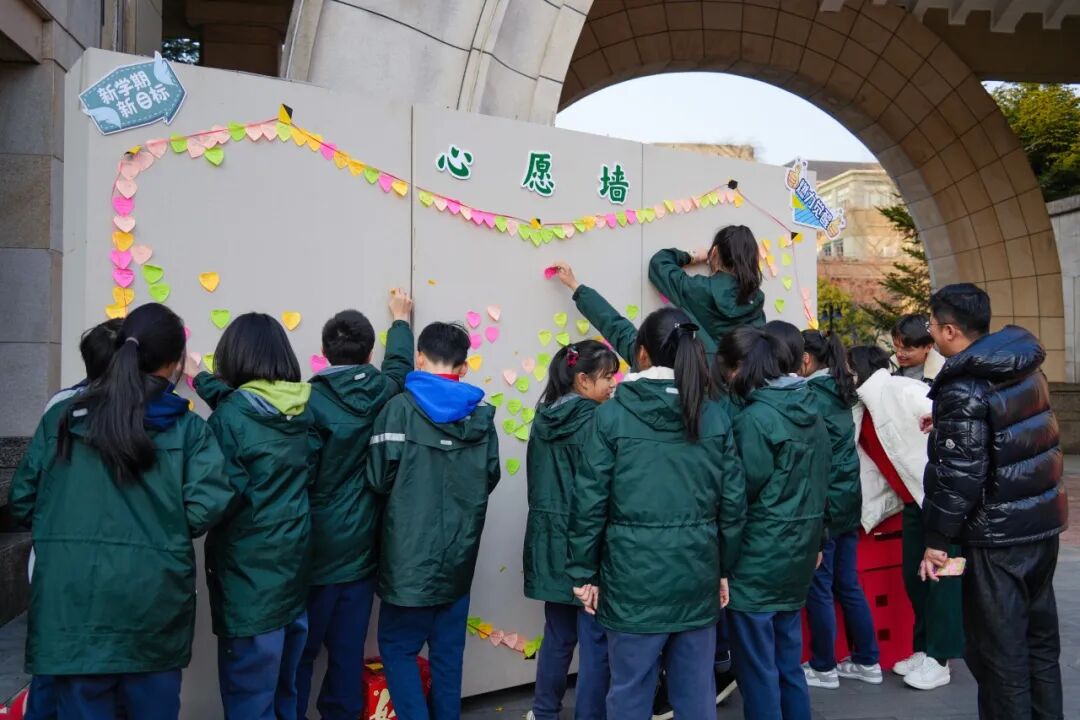 2 月 13 日,开学典礼盛大启幕。马锦绣校长以 “仁爱求真,勇毅追梦” 为学子们送上新学期寄语,话语铿锵有力,如春风化雨滋润心田,激励着全体同学在新征程中笃定前行。现场,家长与学生代表用真挚的发言,共同倡导团结奋进精神,让家校一心的氛围愈发浓厚。典礼上,学校对优秀班级及个人进行隆重表彰。最令人热血沸腾的,当属初三学子的集体宣誓,誓言铮铮,直冲云霄,展现出冲刺中考的坚定决心。活动尾声,一面承载着希望的心愿墙前人头攒动,短短时间内,便汇聚了 500 余份新学期期许,五彩斑斓的便签,写满了学生们对未来的憧憬,为新学期注入满满活力 。