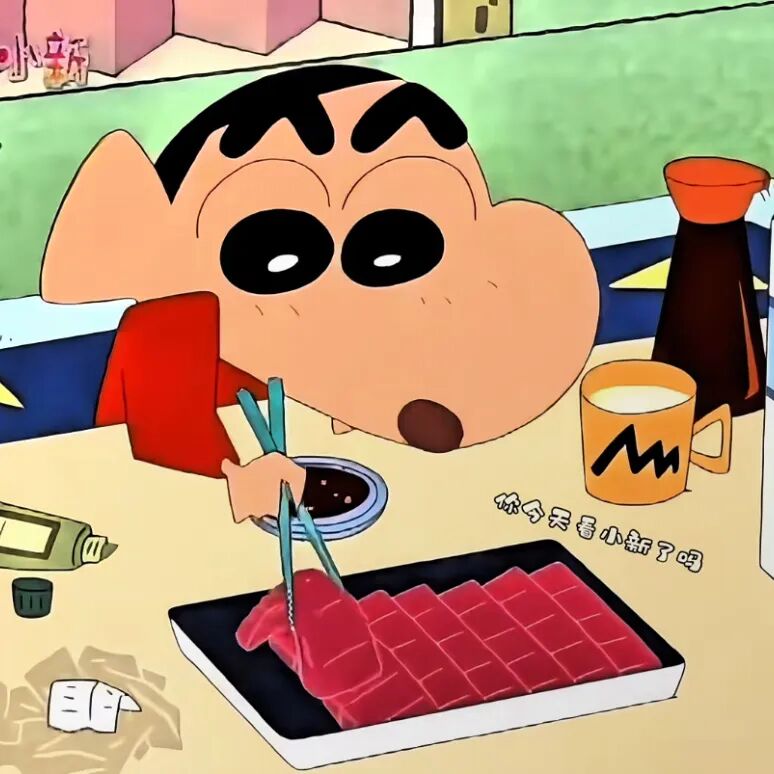 { 与蜡笔小新一起尝试刺身}