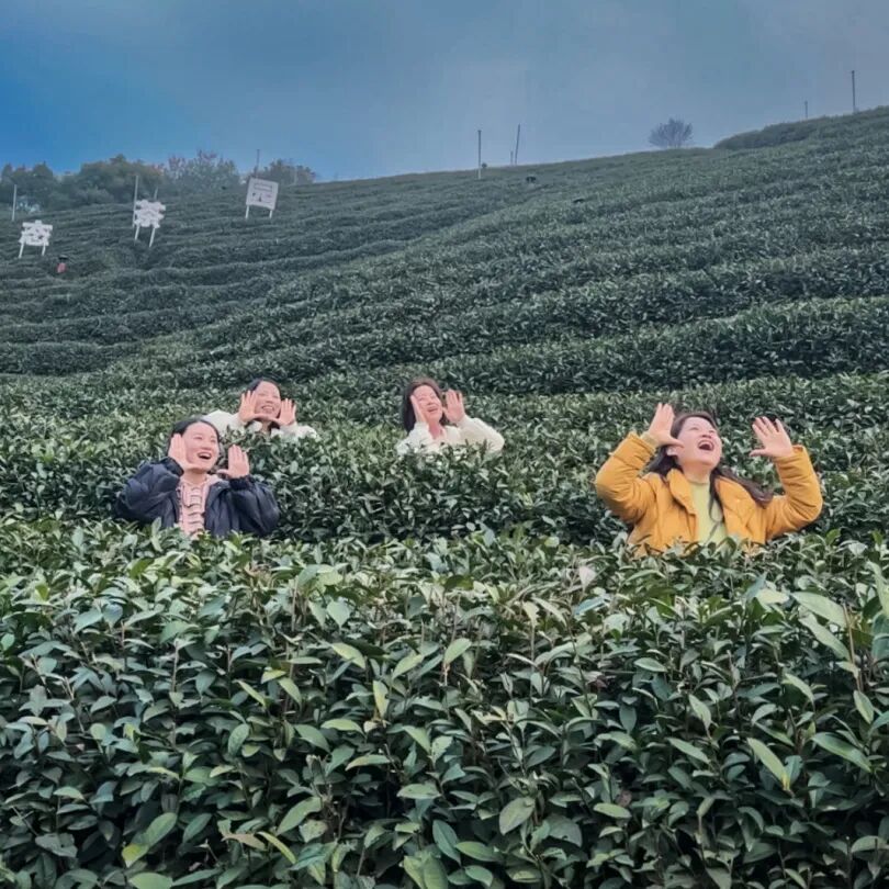 老师们沿着茶园,徒步龙坞,与清茶相伴,个个精神抖擞,言笑晏晏,徜徉于无边春色;而后穿越茶园,游览光明顶水库,感受西山森林公园的清冽山泉;又一路拾级而上,俯览万亩茶园,了解茶镇风貌。这一天,“阳光相伴、健康相伴、快乐相伴”,美好的节日,满心欢喜和愉悦!