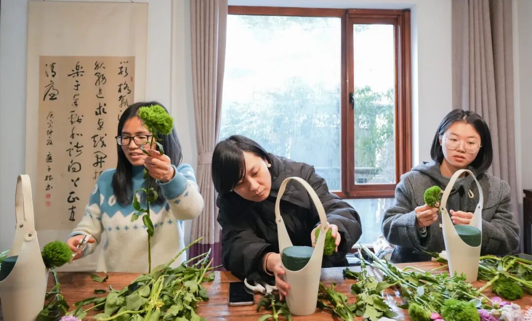 清香扑鼻的绿茶,清甜淡雅的花茶,惬意的午后,老师们在袅袅茶香里慢下脚步,感受生活的温柔。参加插花活动的老师们,则在花艺老师的带领下,学习世界九大花艺流派,插花的基本知识和技巧,搭配色彩和形状,每一件作品都颇具个性、创意与灵感:简约清新、浪漫别致……