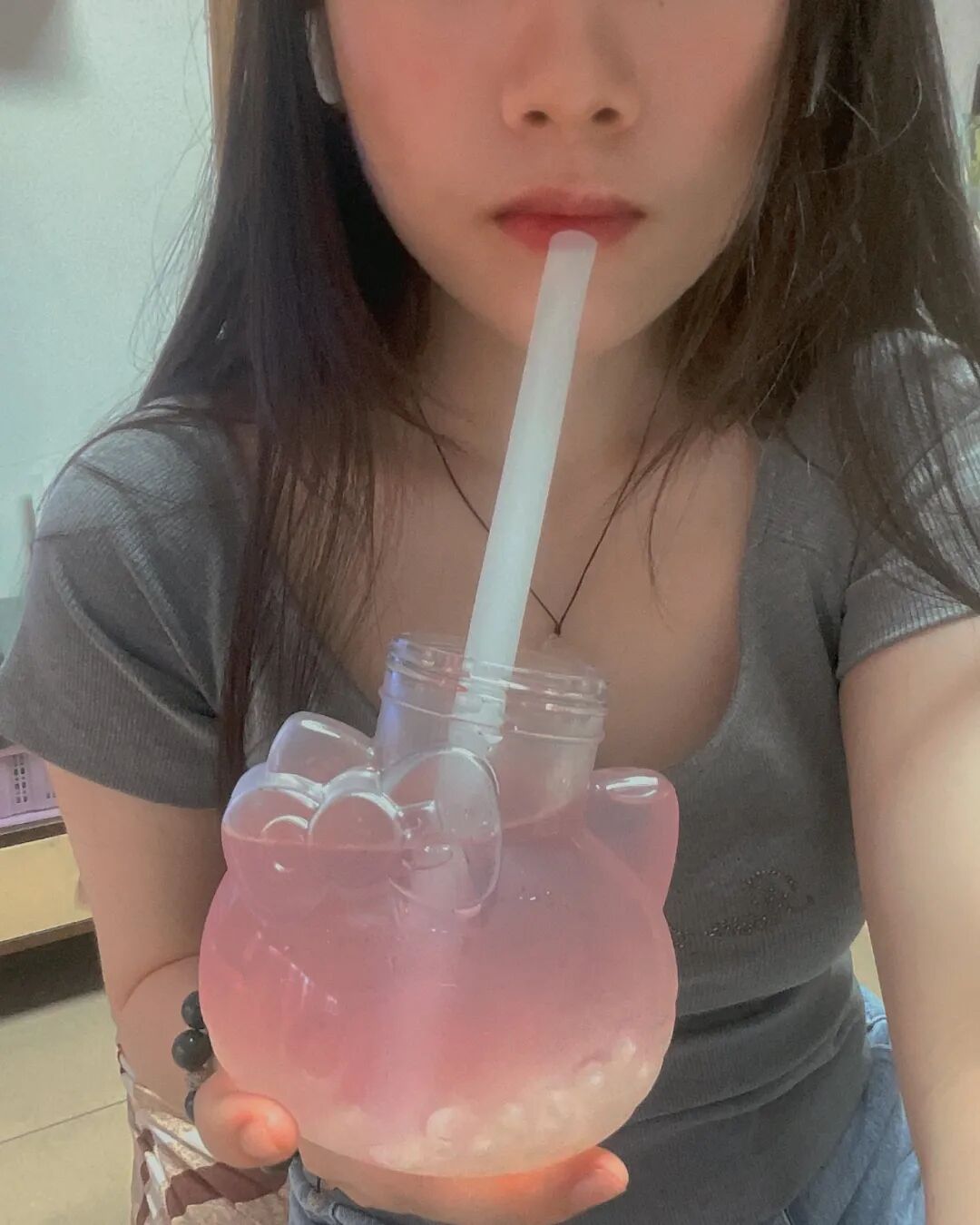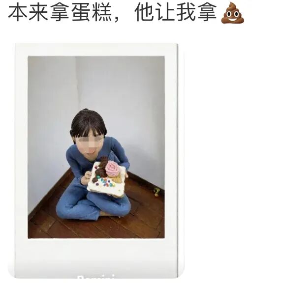 比如说这位拿着蛋糕美美摆拍的朋友,remini为她生成了奇奇怪怪的,一点也称不上美味的东西。