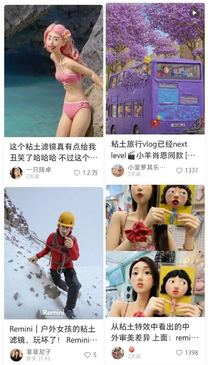 而黏土滤镜就是Remini最近推出的一个新功能,仅仅几天时间,小红书上关于Remini黏土滤镜的帖子就突破了6000篇,相关帖子的浏览量更是达到了几千万次。
