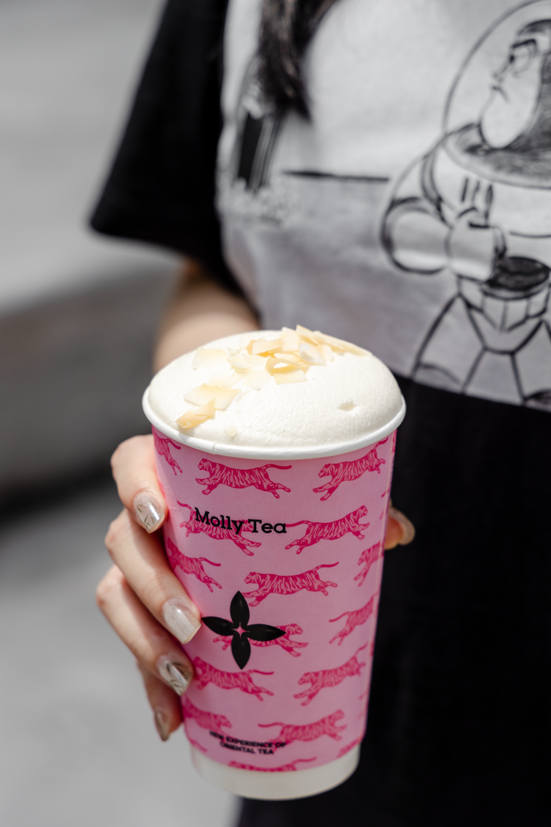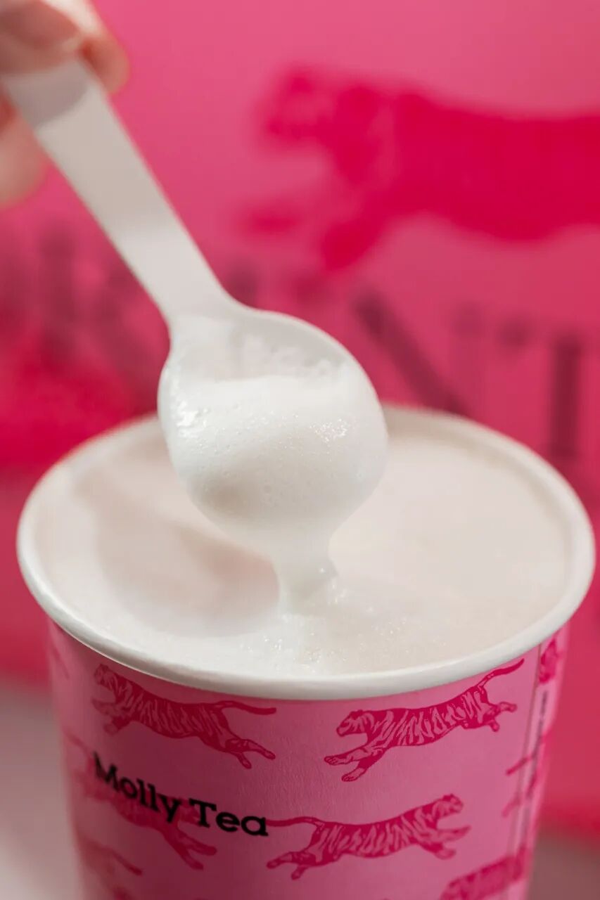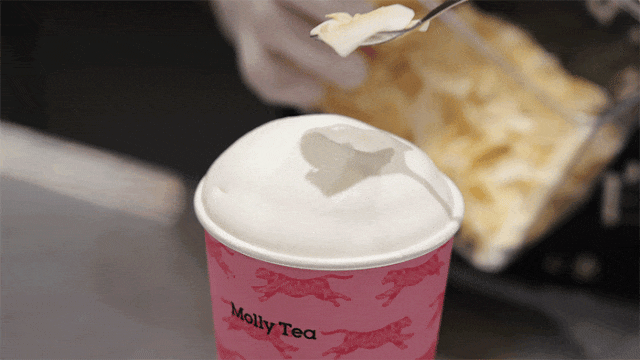 柚花龙井鲜奶茶+米酿奶云+椰子脆片!米酿风味的奶云顶,绵密细腻,满口醇香。