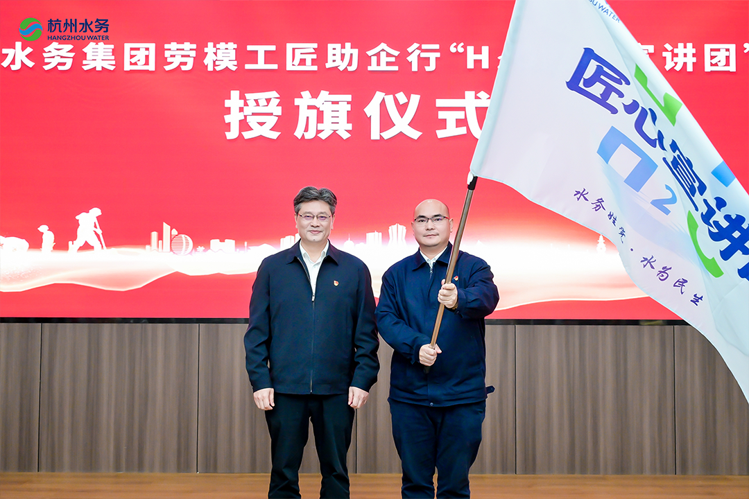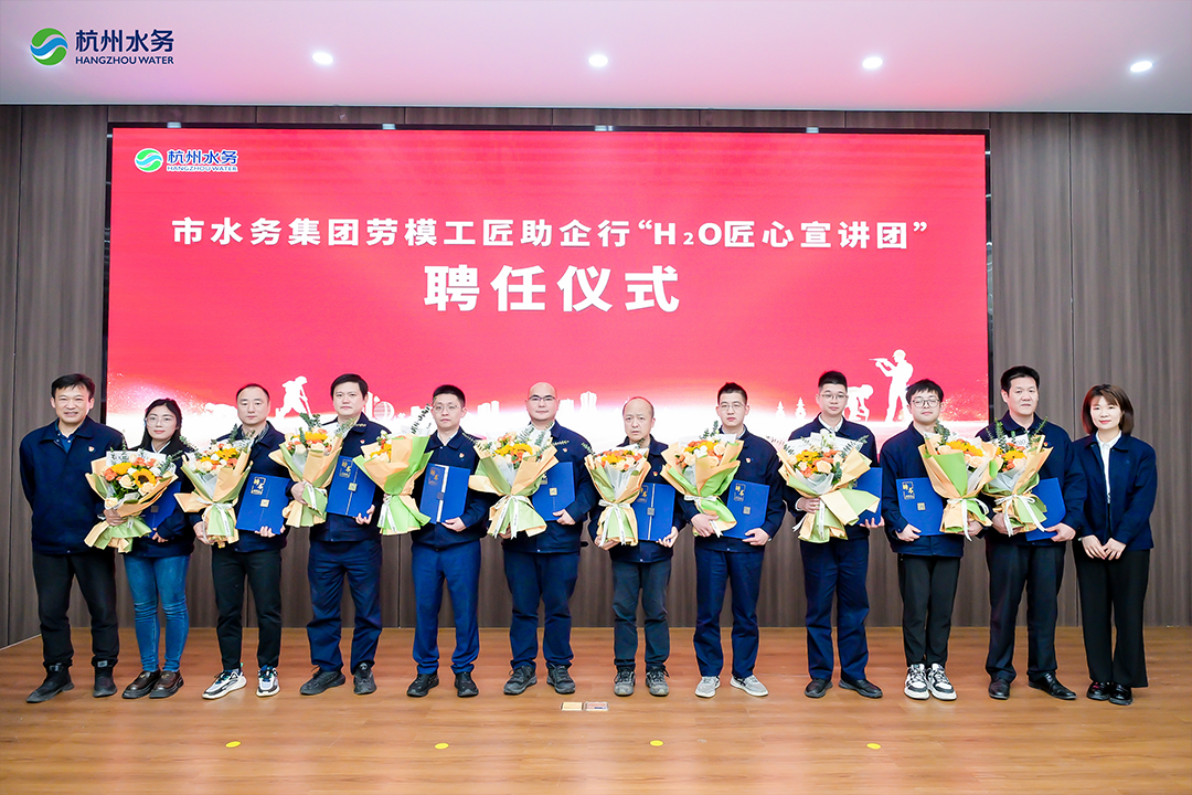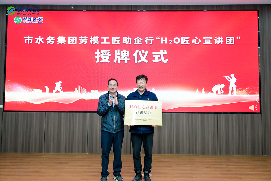 仪式上,市水务集团工会为劳模工匠进行节日慰问、颁发聘书以及授牌授旗。