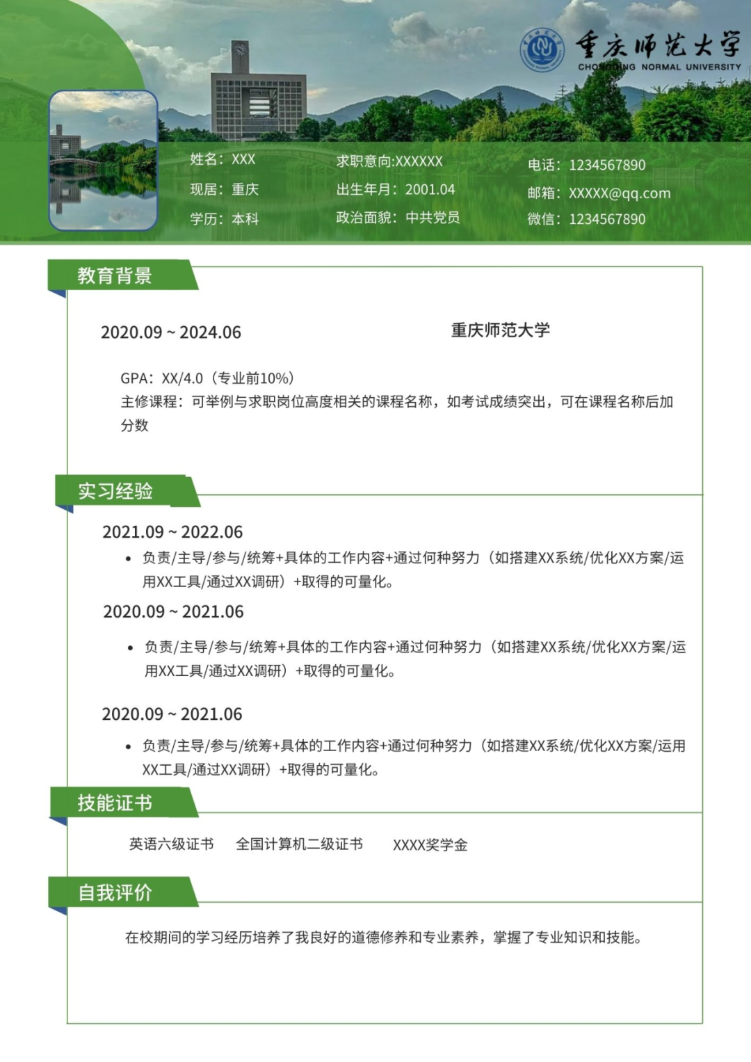 重师人的专属简历✦