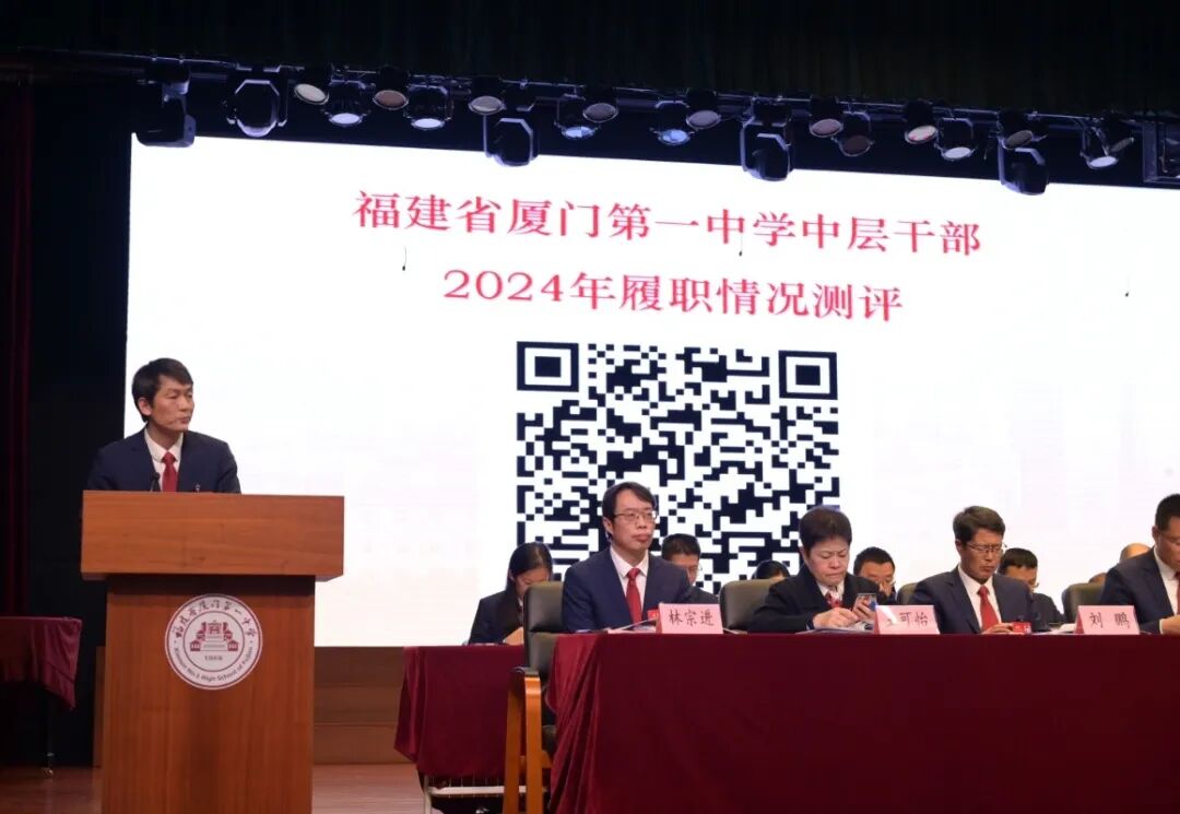 卞祖华校长向大会作《福建省厦门第一中学2024年学校工作报告》。报告从党建工作、德育工作、教学工作、创新体系建设、教师队伍建设、后勤保障工作、安全工作、学生发展工作、群团工作九个方面介绍了学校2024年以来的改革发展情况。卞祖华校长表示:回顾2024年,我校围绕建设“国际知名、国内一流”高水平现代化中学的目标,弘扬“崇尚一流,追求卓越”的一中精神,持续推进迎接建校120周年的“三年行动计划”,抢抓机遇,攻坚克难,在各个方面都取得了显著的成绩;荣获全国中小学科学教育实验校、全国营养与健康学校等荣誉,为厦门教育发展做出了突出的贡献。