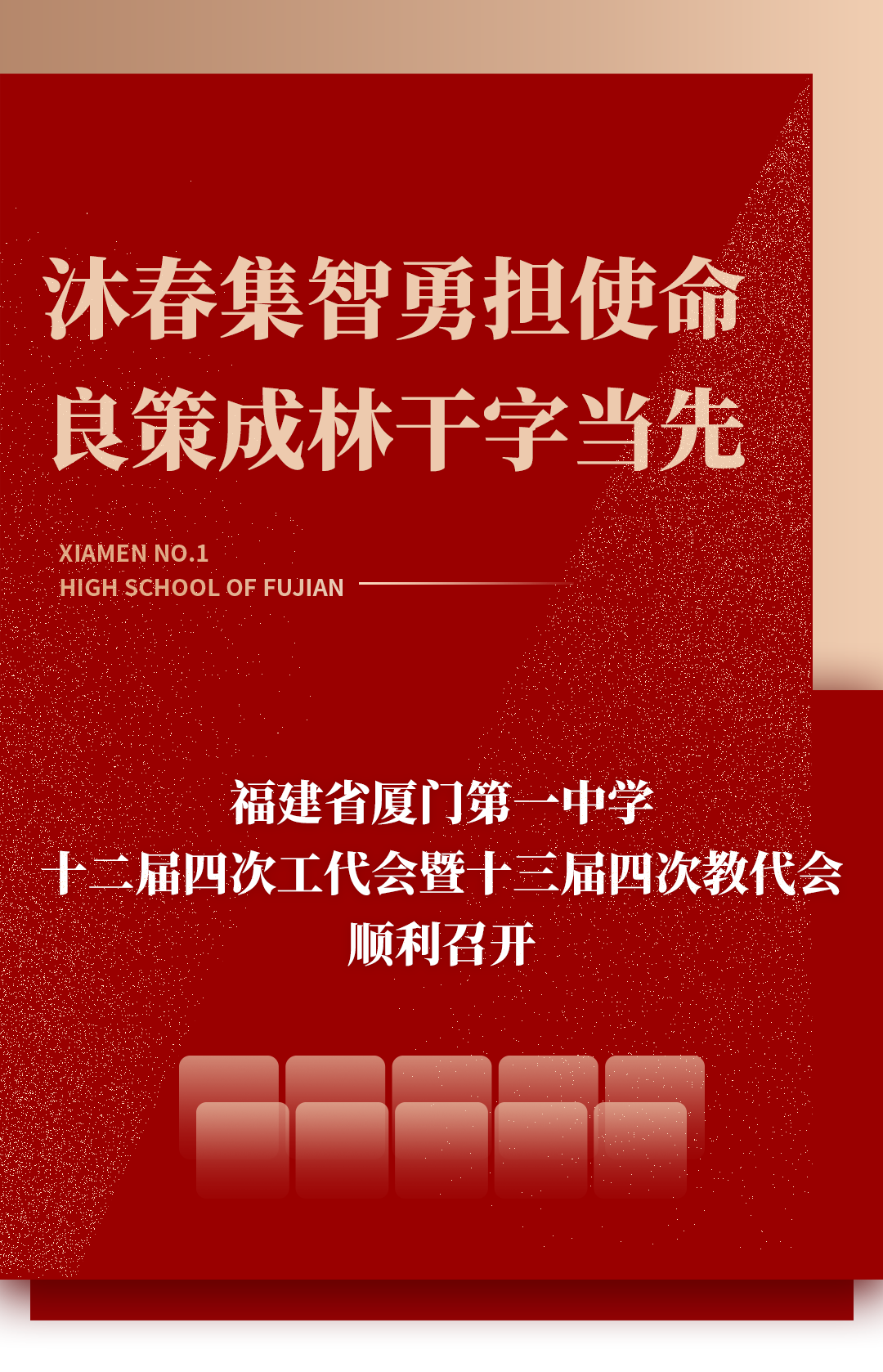 沐春集智勇担使命,良策成林干字当先,推动各项目标任务在工会落实落地,在奋力书写中国式现代化厦门一中新篇章的生动实践中彰显工会担当、贡献工会力量,以优异成绩迎接和庆祝中华全国总工会成立100周年。