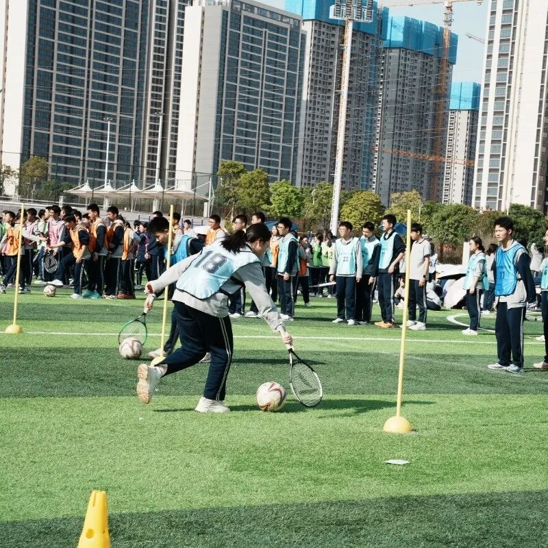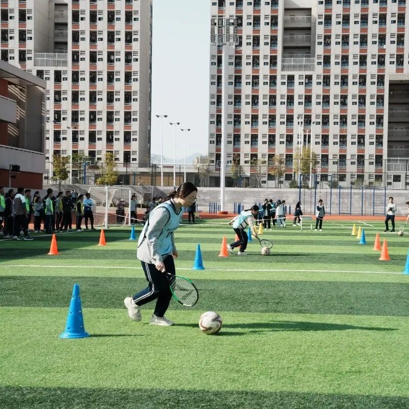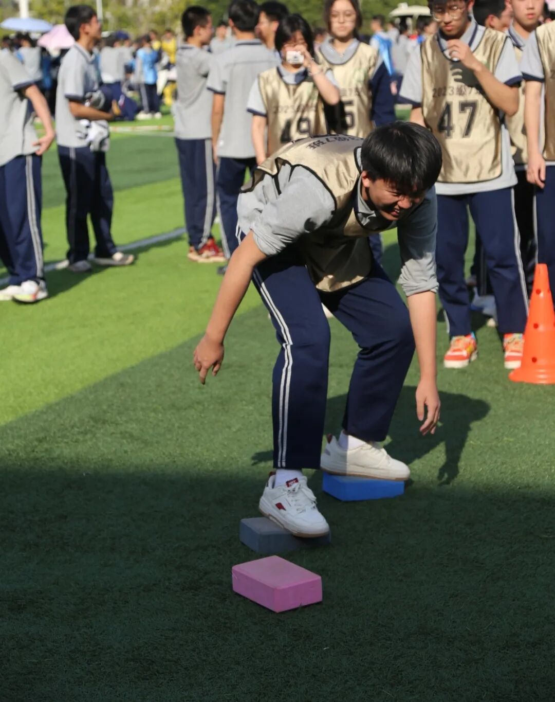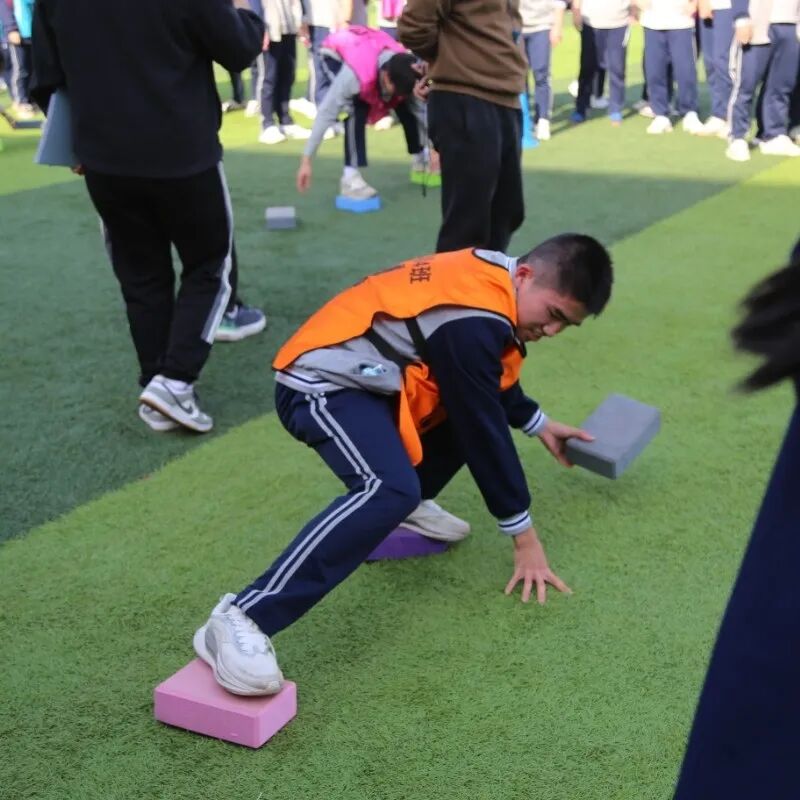 绿茵场上,橙色海绵垫组成动态推进链,参赛者脚尖精准点垫,身体前倾保持平衡,每块垫子向前推移半米完成战术迭代。这一程跨越,不仅是坚持与专注的较量,更是朝理想彼岸的炽热奔赴!