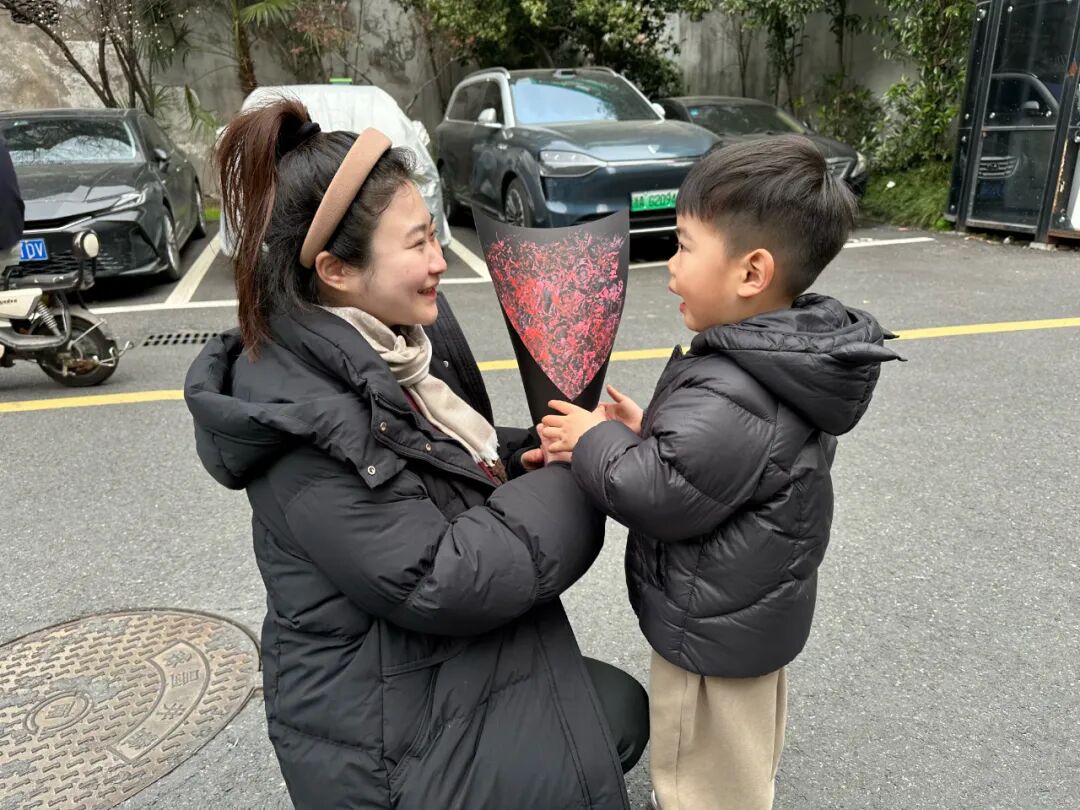托小班的萌娃们化身“暖心小天使”。他们手捧小花,迈着稚嫩步伐走进社区。看到路过的女性,便仰起小脸,奶声奶气地说:“阿姨/奶奶,节日快乐,花花送给您!”。小小的花朵传递着纯真的爱,温暖了整个社区,也在孩子们心中种下善良与关爱的种子 。