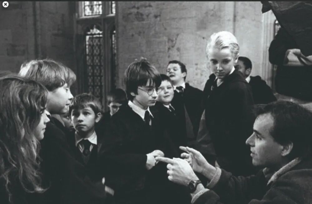 当时间线进入巫师时间,对“住在碗橱里的小男巫”一无所知的汤姆·费尔顿最初试镜的角色并不是德拉科·马尔福,而是哈利·波特。“电影制作人员并不是在寻找‘演员’,他们是在寻找角色本身。”如果你在学生第一次涌入霍格沃茨礼堂时紧紧盯着教授桌,又或者在第一场魁地奇比赛时没有只盯着奇洛和斯内普教授,那么你会看到一位与邓布利多十分相像的教授,他就是汤姆·费尔顿的外公,也是一位曾担任霍格沃茨教授的麻瓜地球物理学家。