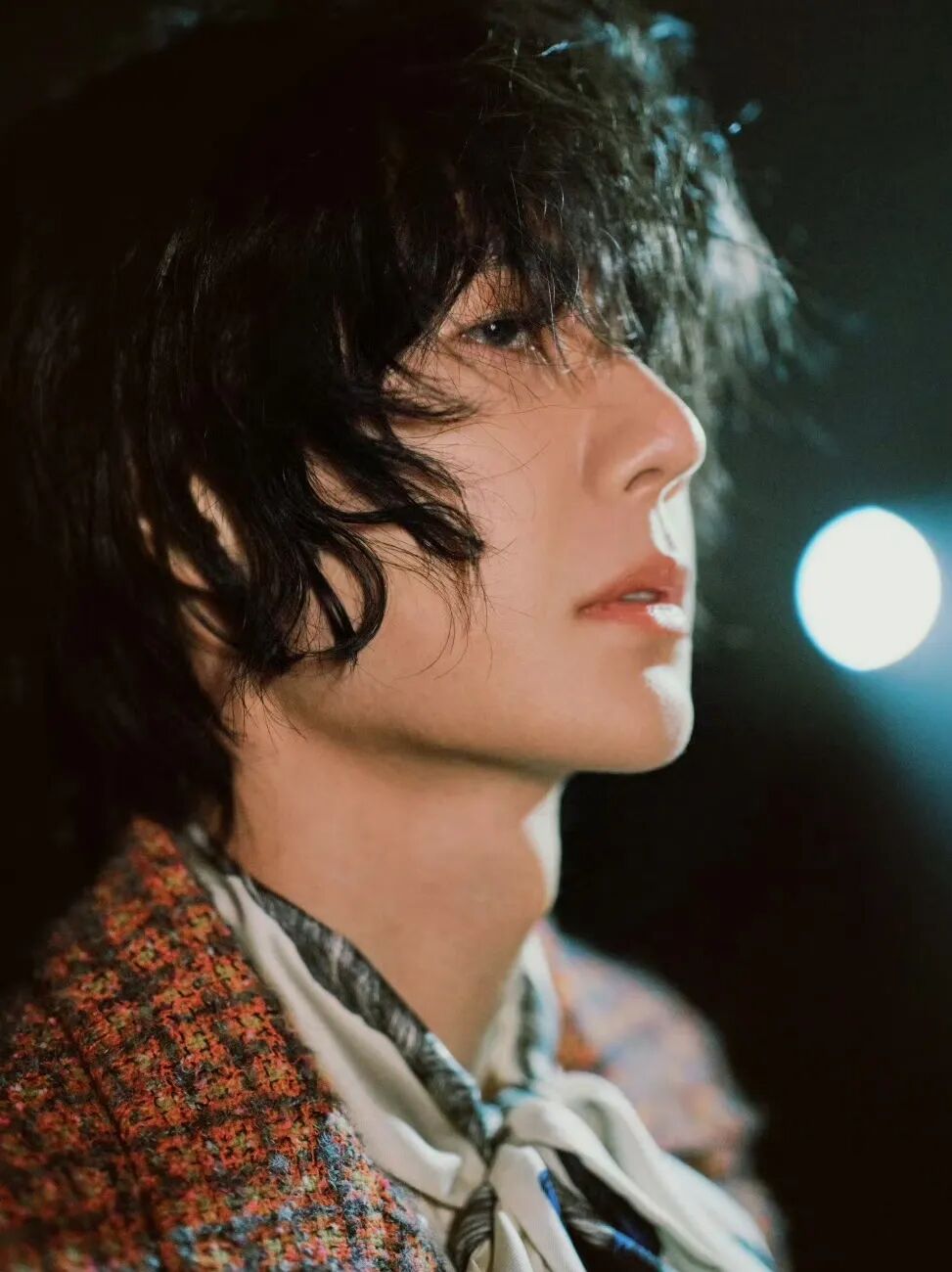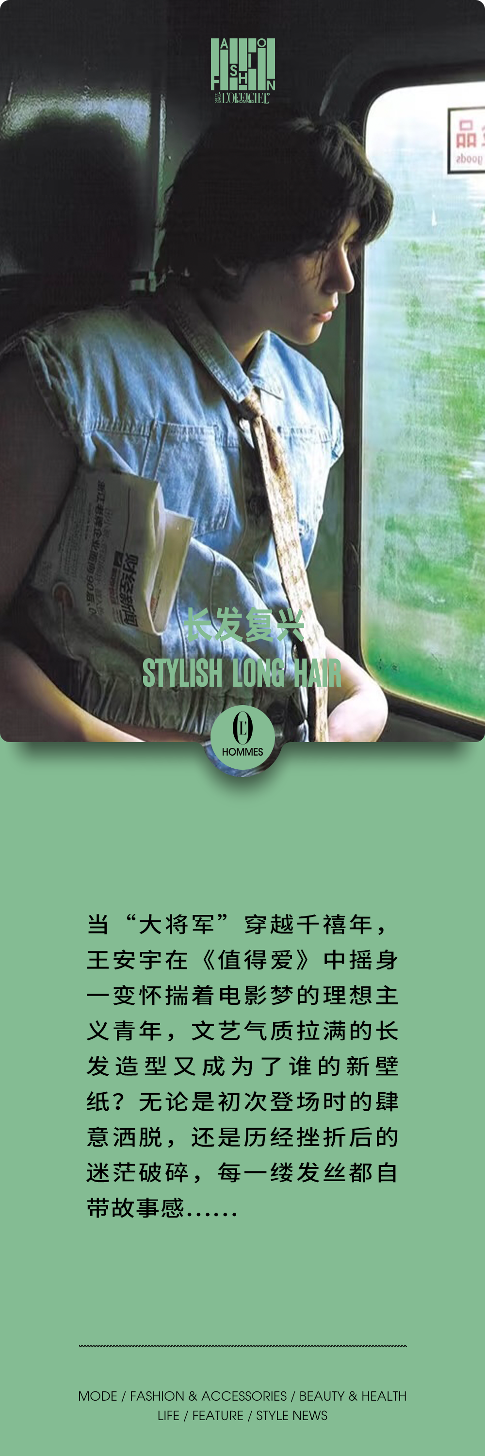事实上王安宇并不是首次尝试长发造型,早前这套日系风格写真就已霸占了许多人的手机壁纸。长发随着火车车窗外拂进的风飘逸,眼眸如同静谧的湖水澄澈又温柔,活脱脱一位从漫画中走出的花美男。除了王安宇以外,许多男明星也曾挑战过长发造型。例如王一博,细密的羊毛卷每一缕都带着恰到好处的蓬松感,搭配一身剪裁利落的小香风西装既复古又时髦,如同19世纪英国庄园中的贵公子般优雅精致。不同于王一博的英伦风情,李承铉的长发造型则颇有几分痞气,他将额前部分向后扎起,余下的长发自然垂落及肩,在保留长发的随性时又增添了几分不羁。搭配运动休闲装,像是《热血高校》里随时准备为了兄弟决斗的“不良少年头目”。而朱正廷的一袭白色长发更是为大家带来了别具一格的视觉盛宴,小波浪在斑驳梦幻的光影间闪烁着冷冽却迷人的光泽,每一缕都好似精心雕琢过后的艺术品,长发美男们请按这个标准卷起来好吗!从《孤注一掷》到《“骗骗”喜欢你》,作为长发美男的代表之一,孙阳的长发造型无疑是深入人心的。无论是搭配电影中的港风印花衬衫,还是日常生活里个性十足的潮牌T恤与迷彩工装裤,他对各种风格都有着强大的驾驭力与潮流青年独特的时尚品位。他们凭借着各具特色的长发造型,在不同风格之中自由驰骋,火力全开。每一套造型的背后,都是他们对角色、对艺术、对时尚的大胆挑战与解读,让我们看到了他们在形象塑造上的无限可能,也愈发期待未来能看见他们更多元化的精彩作品。