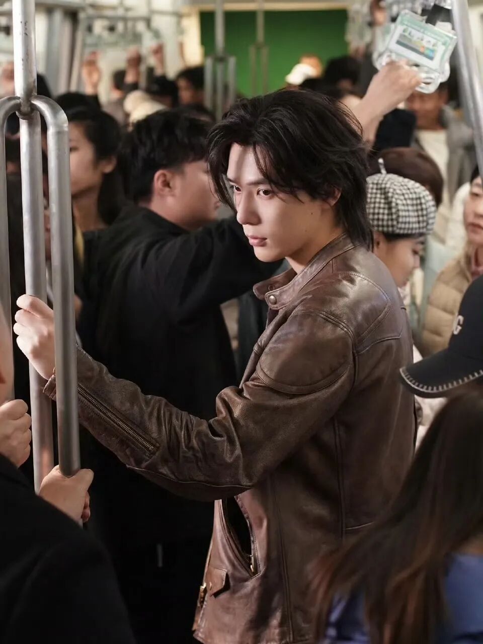 随着剧集的热播,“抽象”的故事情节连连爆梗,甚至连剧宣海报都不走寻常路到直接还原经典QQ秀,每一个细节全部精准狙击千禧年的DNA,同时王安宇在剧中的长发造型更成为串联起时代审美的关键符号。王安宇饰演的周水作为一个怀揣着电影梦的理想主义青年,从大学起就蓄着一头“文青标配”的长发,充满了浓郁的艺术气息。除了专业的演绎之外,长发造型进一步升级了角色的文艺范与坚持热爱所带来的感染力。早期就以“古希腊掌管眼泪的神”称号出圈的王安宇,其哭戏通过不经意间垂落的发丝加持,更是让他在“破碎感”的赛道上一骑绝尘,略带凌乱的长发好像也在诉说着角色追梦路上内心的挣扎与迷茫。而这套棕色做旧皮衣搭配微卷狼尾长发的造型,又为角色营造出了全然不同的风格。做旧皮衣展现出一种复古又随性的质感,微卷的狼尾则增添了几分不羁与潇洒,几缕碎发随意散落在额前,颇有古早经典港片的韵味。长发自然蜿蜒在灰色针织冷帽的边缘,配合王安宇细腻的眼神戏,专注又深邃的目光在镜头特写下仿佛藏着无数的故事。黑红色格子衬衫与光影的映衬,让人不禁联想到王家卫电影美学中的胶片色彩,又是一帧来自“冷都男”的百万级氛围感。