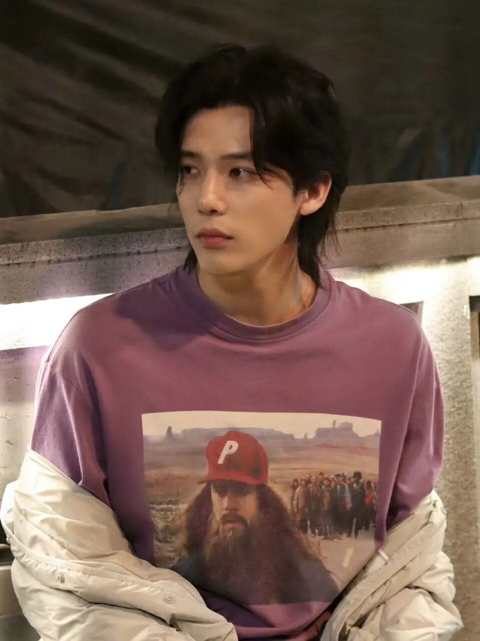 即便只是简约的T恤或帽衫造型,长发也意外开创了“盐系男友”look的新范式,成为了大家的心头好。简单干净的穿搭因为有了长发的点缀,瞬间丰富了整体造型的层次感,不少观众直呼“帅得太超标了”。