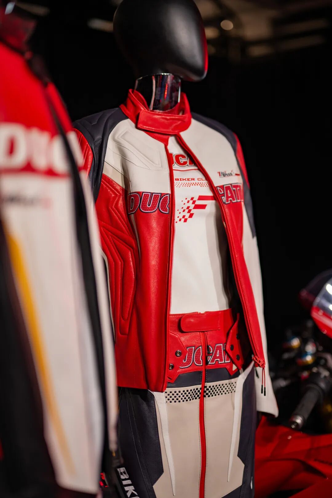 这件皮衣其实有很多细节处都颇具巧思,不过最惊艳我的点是这件皮衣把DUCATI PANIGALE V4的车型特点融入到了设计中,我觉得这是个很有意思的融合。