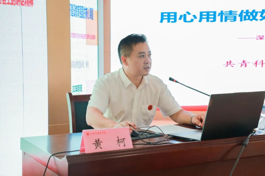 黄柯通过大量生动的案例和翔实的数据,详尽阐述了习近平总书记5月29日在中央政治局第五次集体学习时的重要讲话精神,强调了“培养什么人、怎样培养人、为谁培养人”这一教育根本问题的重要性,并从“教育的根本问题”理论体系的形成与发展、“教育的根本问题”理论体系的内涵与内在联系、用心用情做好建设教育强国的核心课题三个方面,进行了深入阐释。他结合自身丰富的教学与管理经验,鼓励干部教师培养自身的道德情操,夯实自身的专业基础,确立长远职业规划,将教书和育人相统一,做学生奉献祖国的引路人。