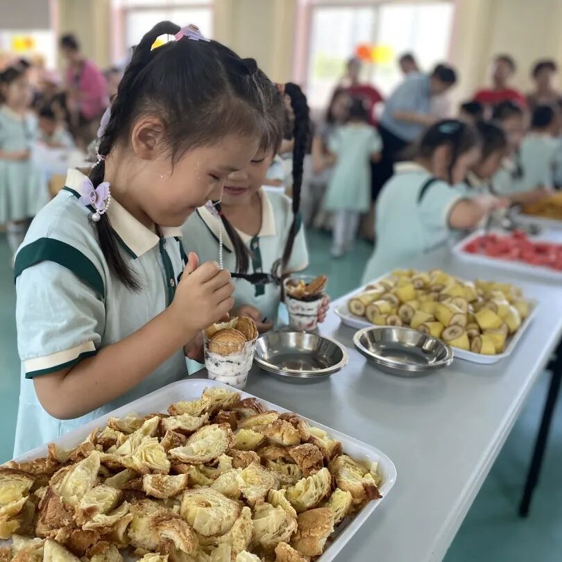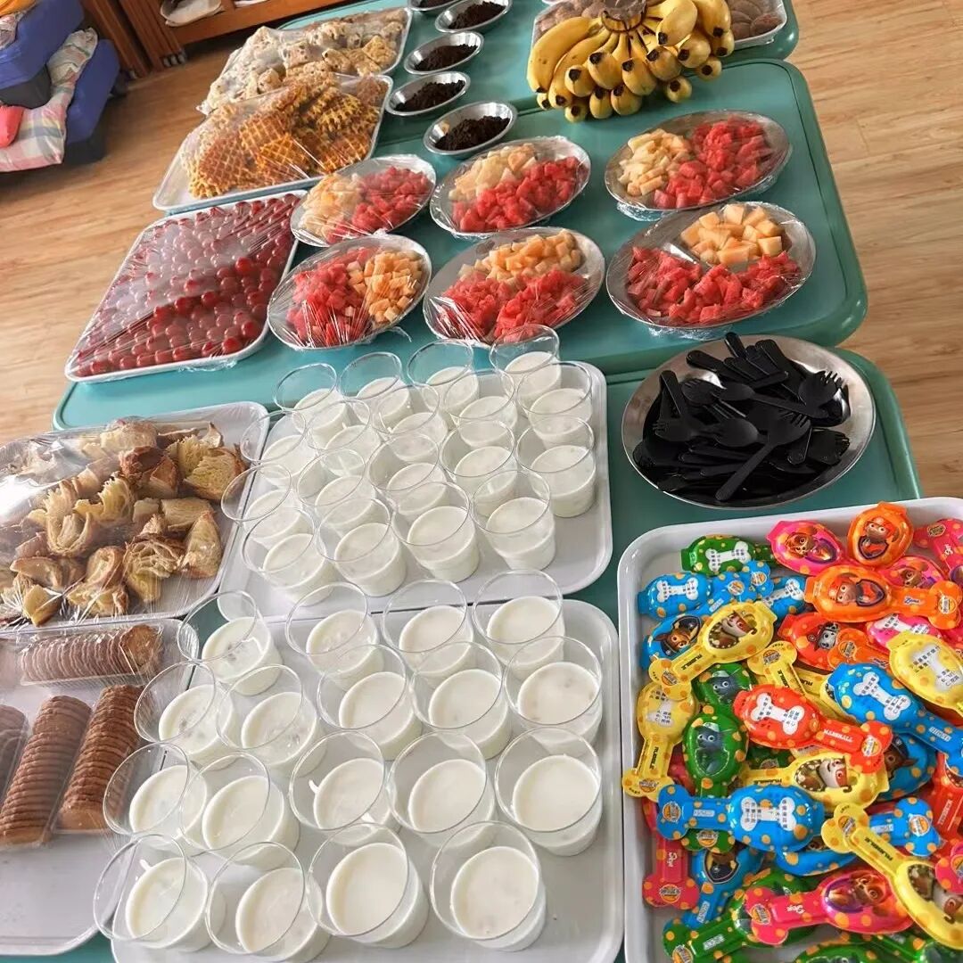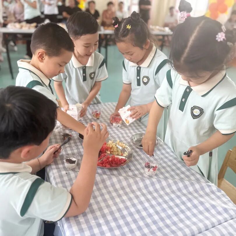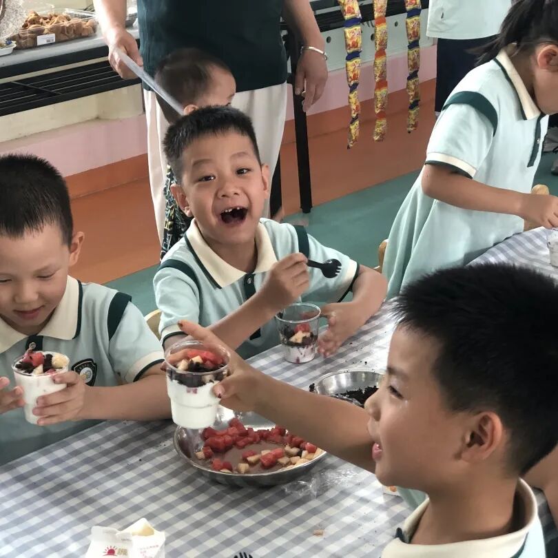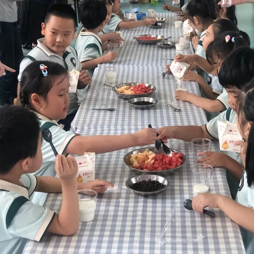 孩子们一起制作酸奶杯,一起吃着各种好吃的水果和点心,真的非常开心。