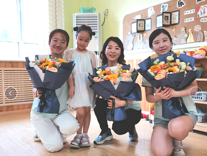 家长和小朋友也向老师们送上鲜花和锦旗,以感谢老师三年来对孩子无微不至的教导与关爱。