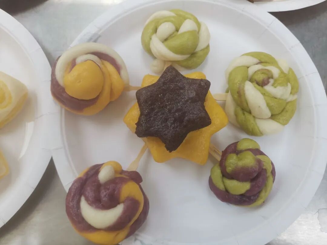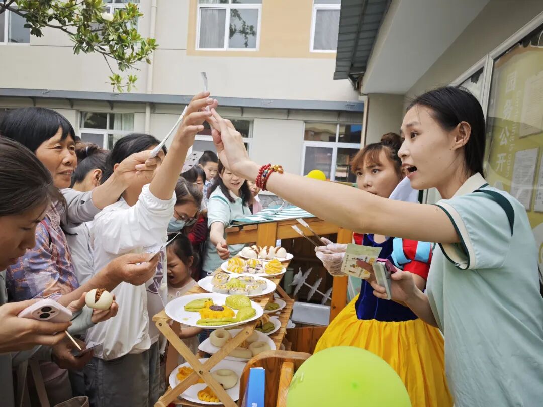 幼儿园的美食远近闻名,炊事员老师特意为游园的小朋友们准备了好看又美味的面点。新出锅的面点一经推出就被围得水泄不通,场面火爆!