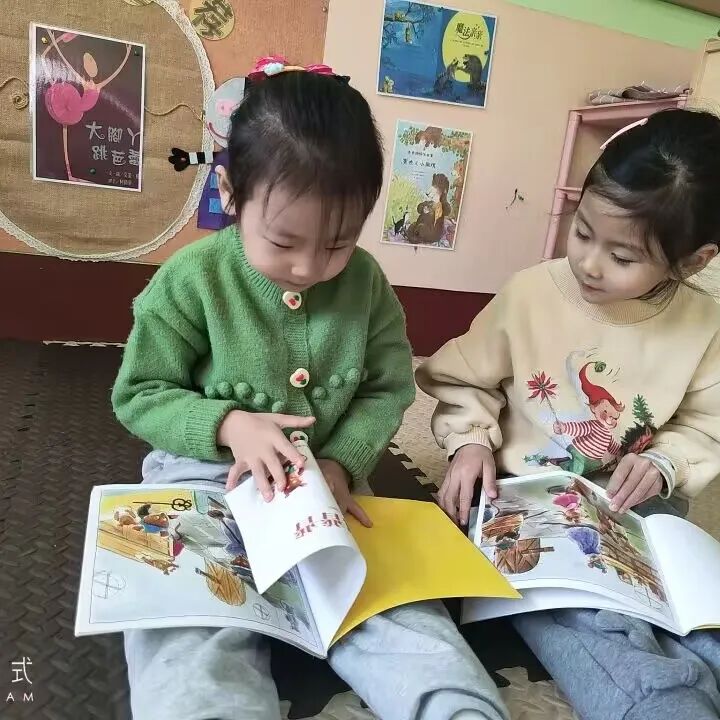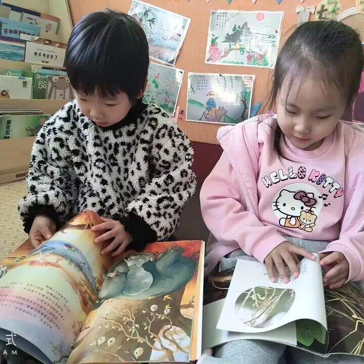 把自己最喜欢的图书带到幼儿园,与同伴交换、分享,活动室随处可见孩子们读书的身影。